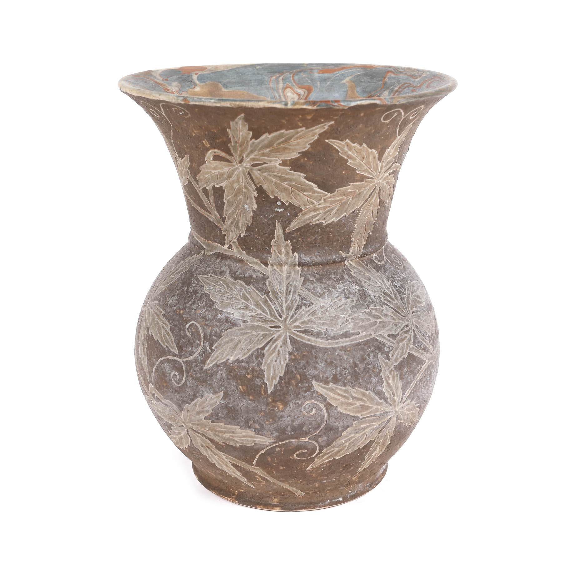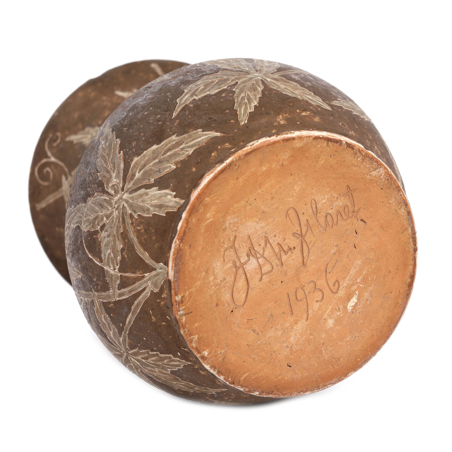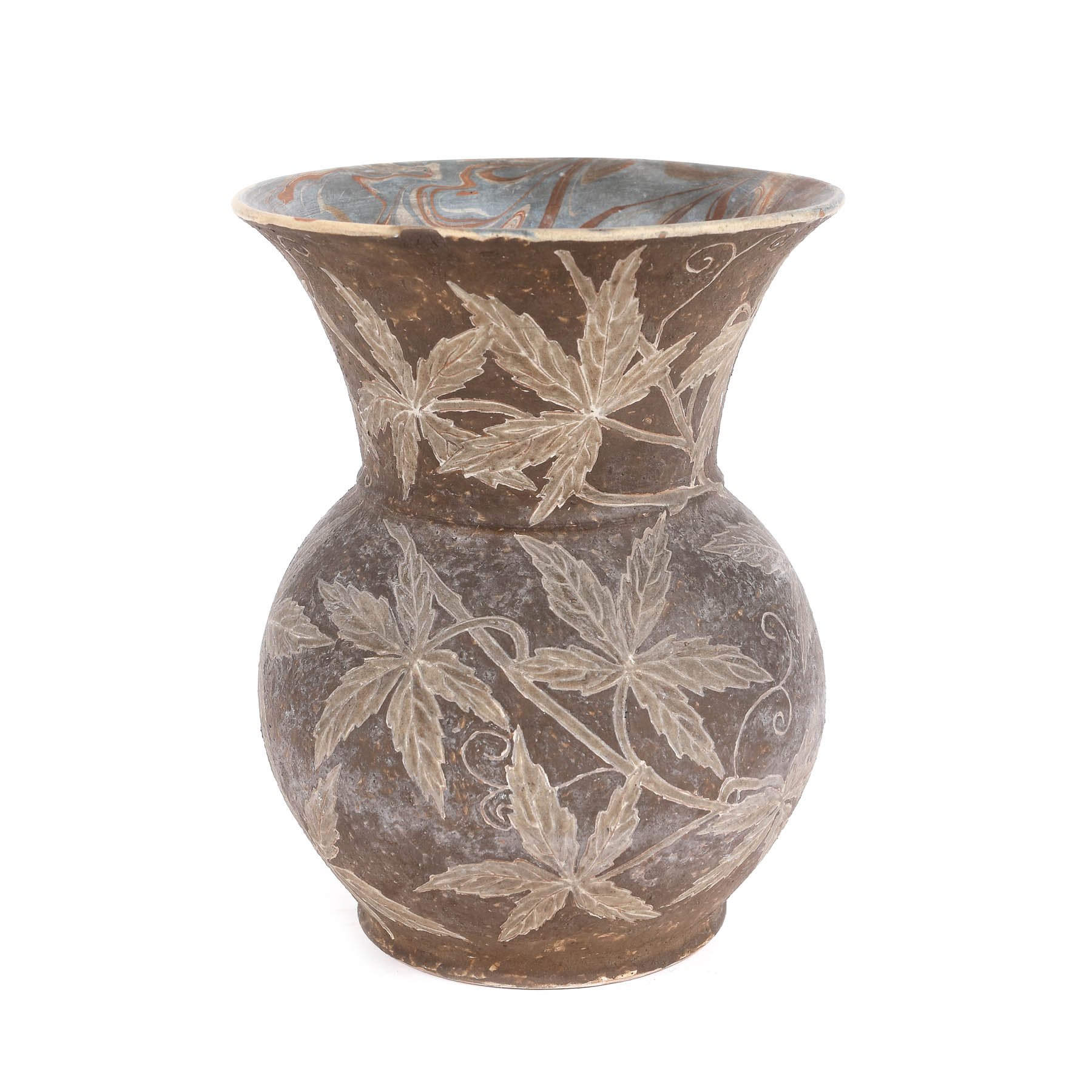 56. Inedită vază pentru flori, decorată cu motivul frunzelor de arțar, lucrată în atelierul de la Filaret-București, datată 1936 [1936]