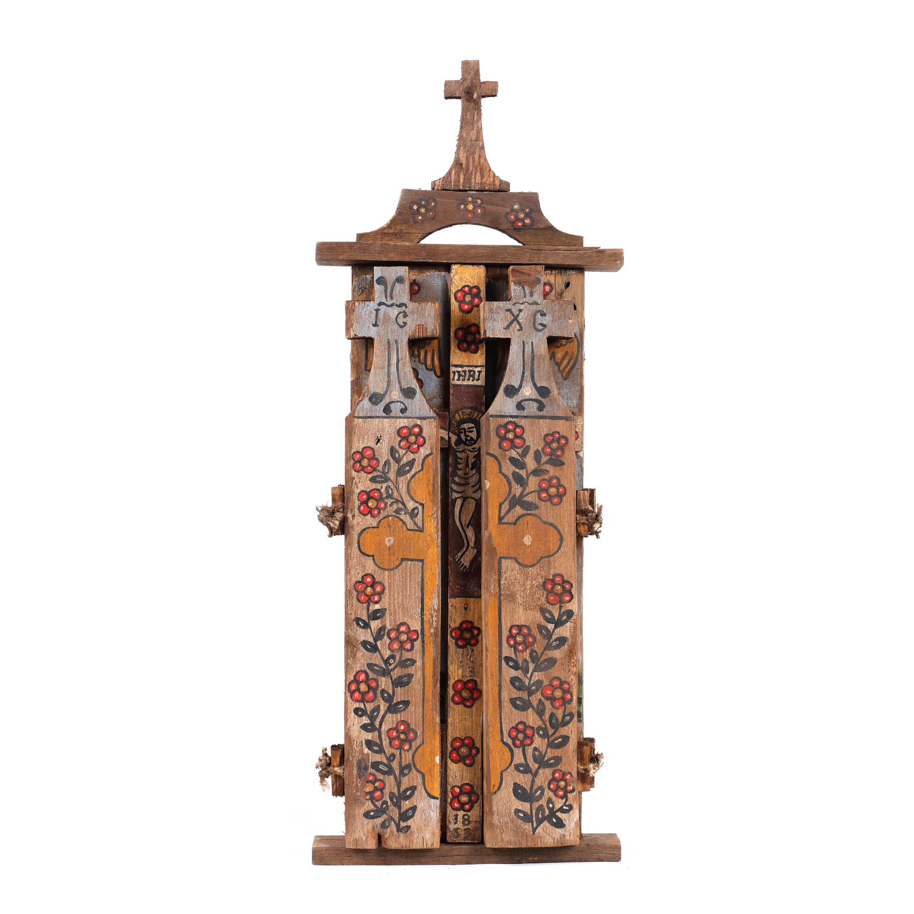 43. Triptic, ”Răstignirea Domnului” și ”Sfinții Arhangheli Mihail și Gavril”, atelier transilvănean, 1853 [1853]