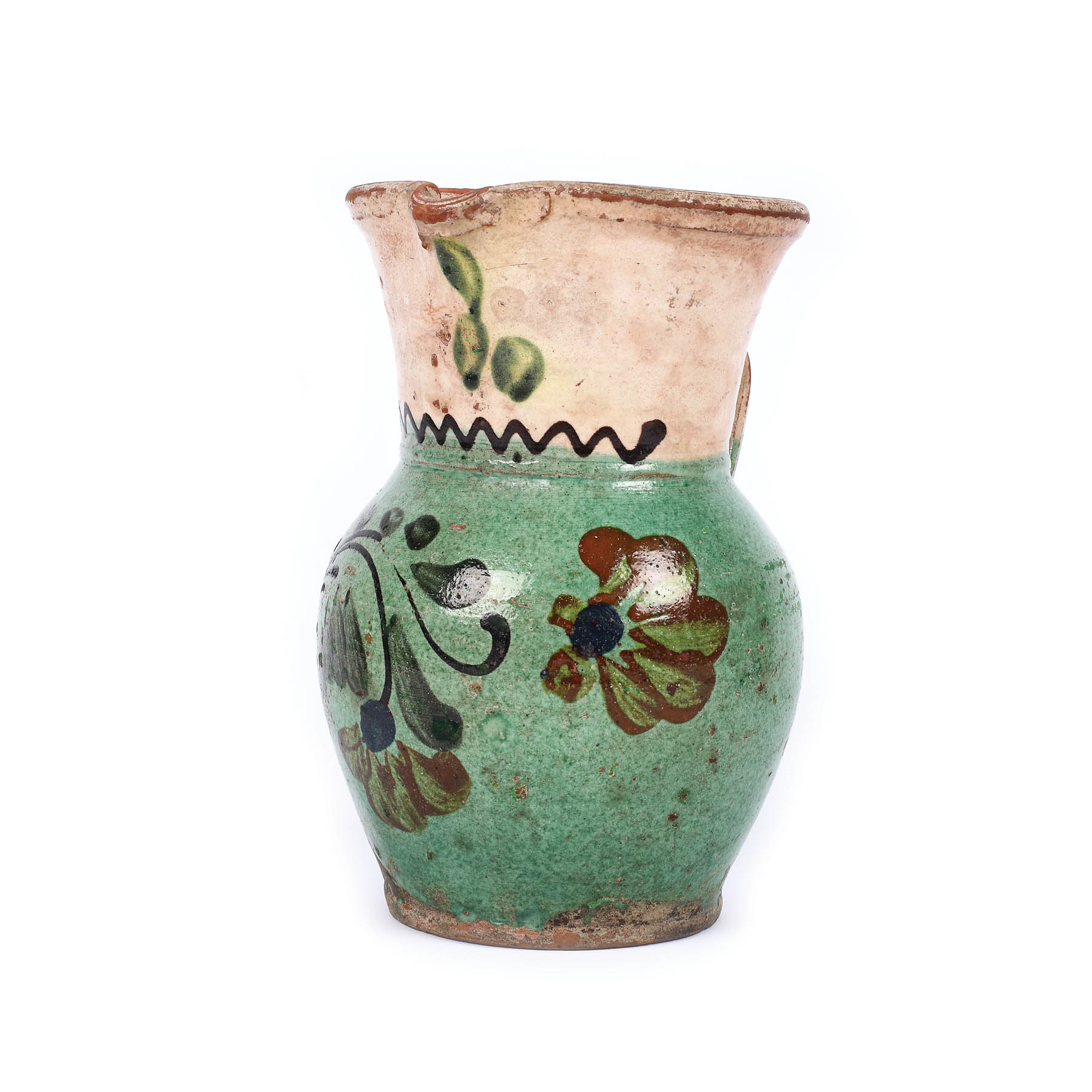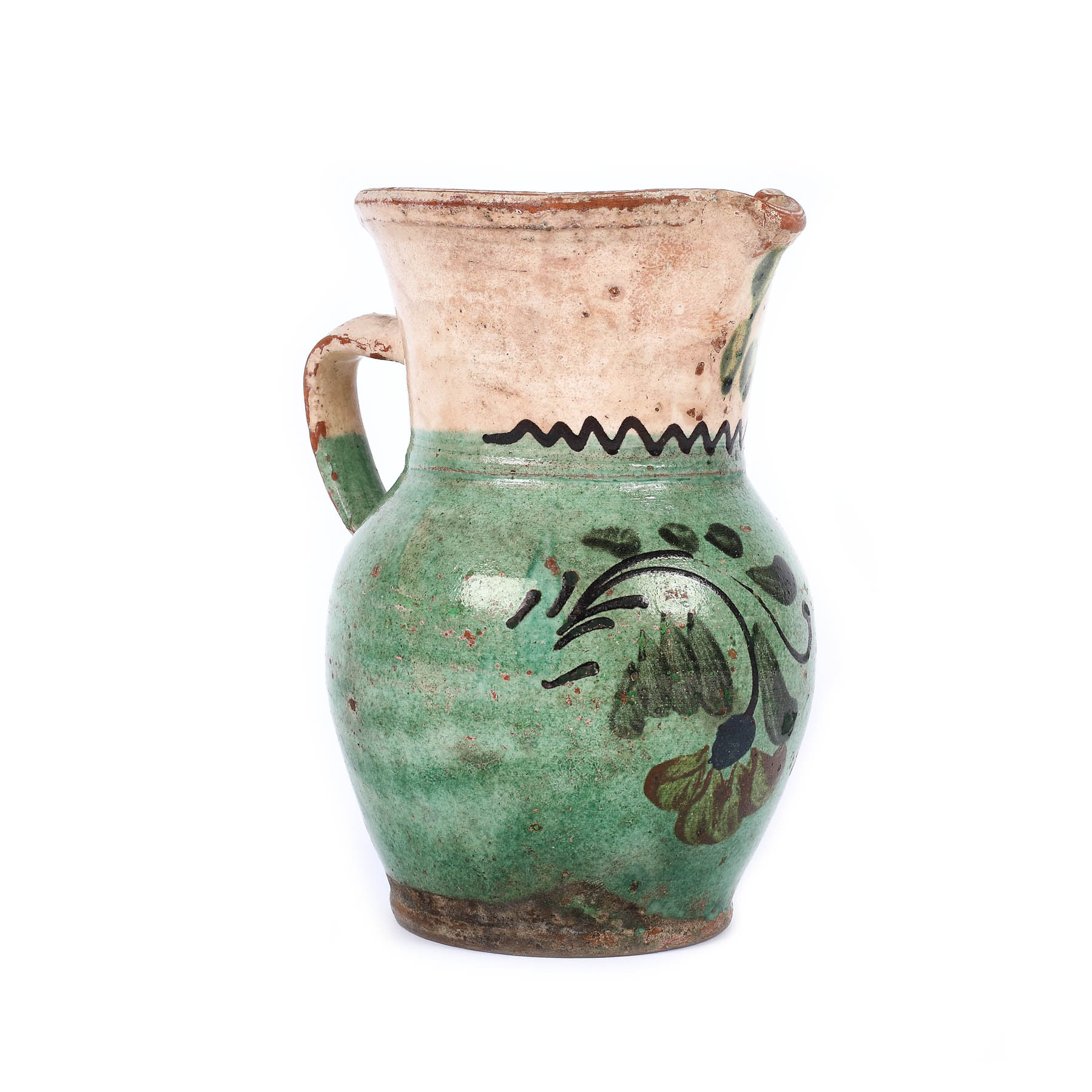 48. Ulcior pentru apă cu toartă, din ceramică, decorat cu motive florale, posibil centrul Corund, cca. 1900, piesă de colecție [ca. 1900]