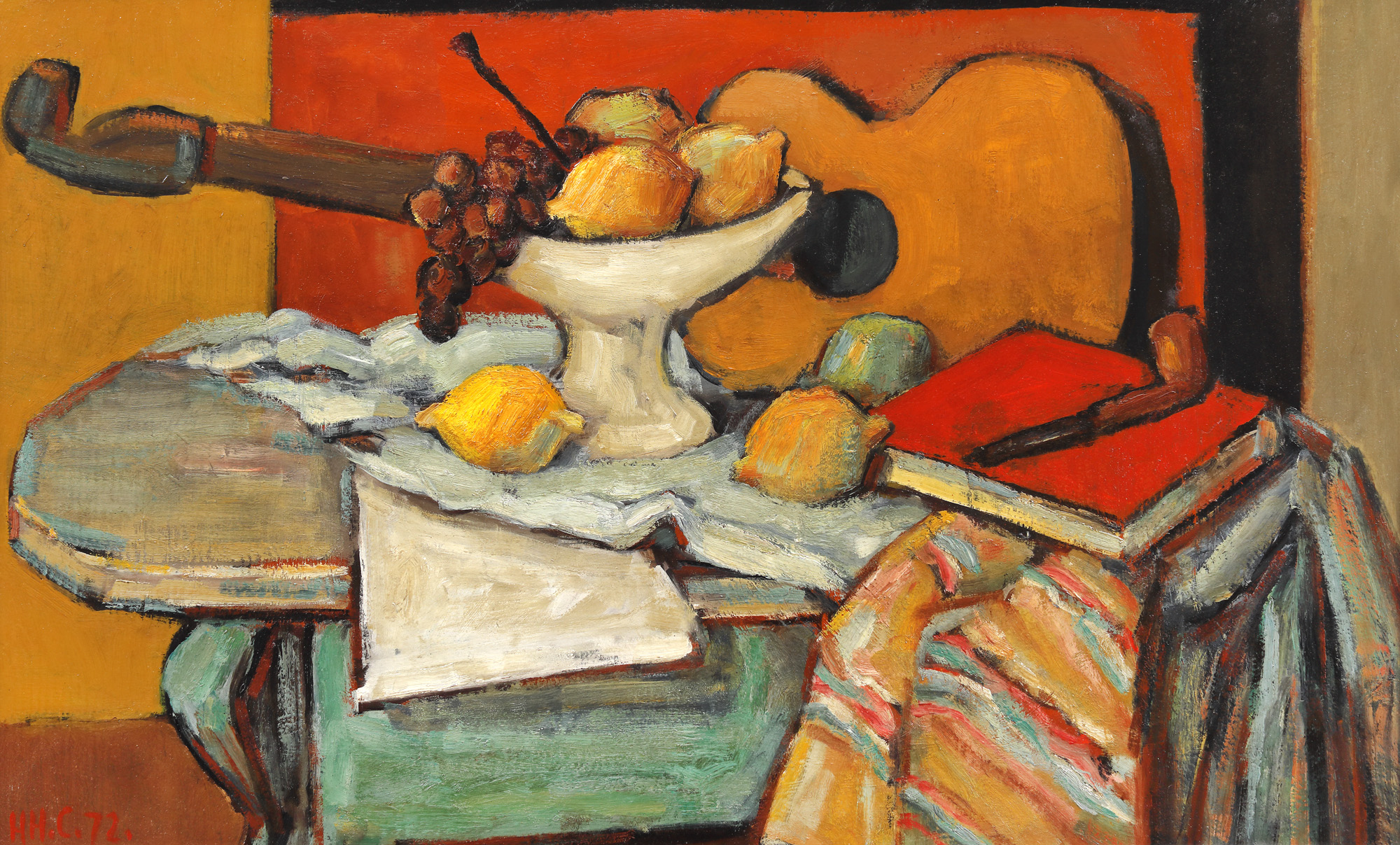90. Natură statică cu chitară, fructieră și pipă [1972]