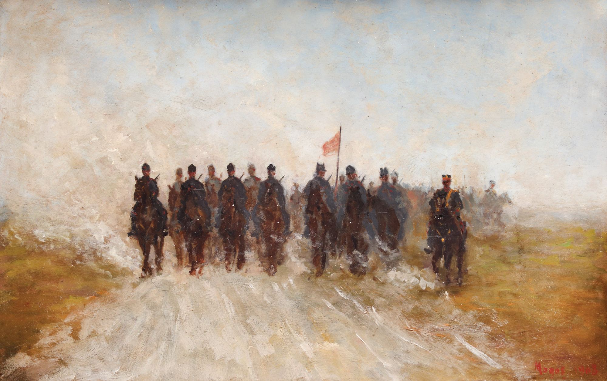 semnat și datat dreapta jos, cu roșu, ”Mogoș, 1908”