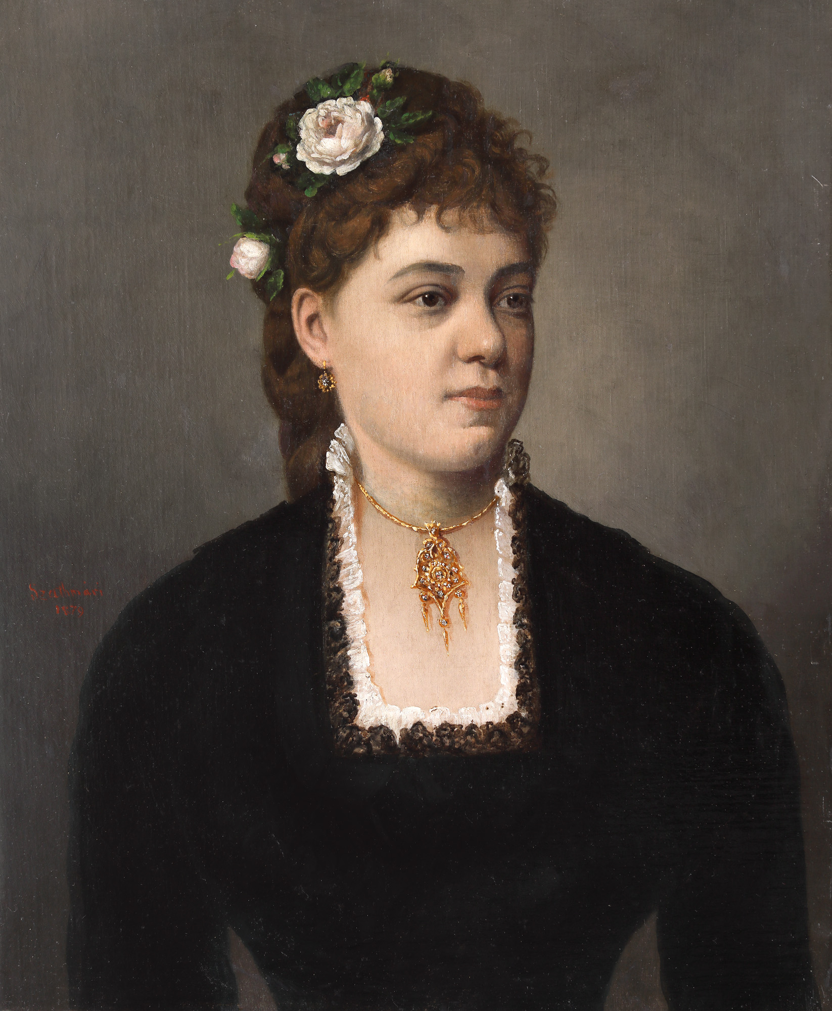 semnat și datat lateral stânga, cu roșu, "Szathmari, 1879"