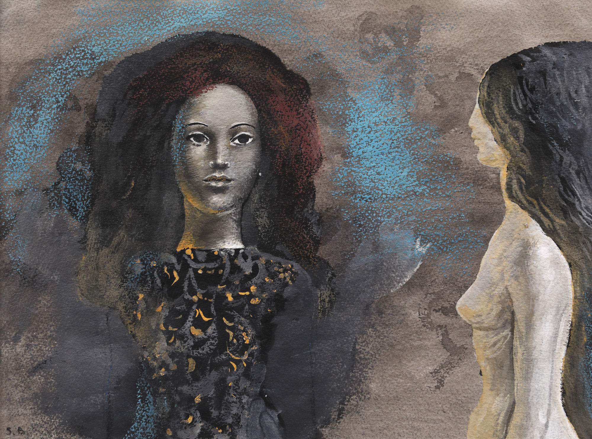 acuarelă şi guaşă pe hârtie lipită pe carton