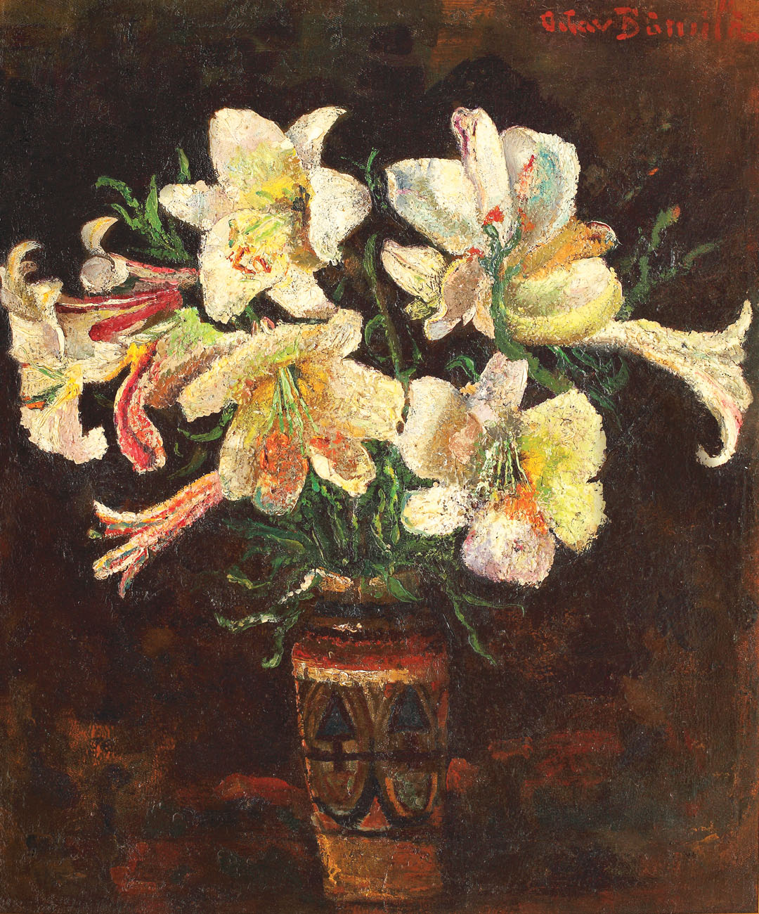 semnat dreapta sus, cu roşu, Octav Băncilă