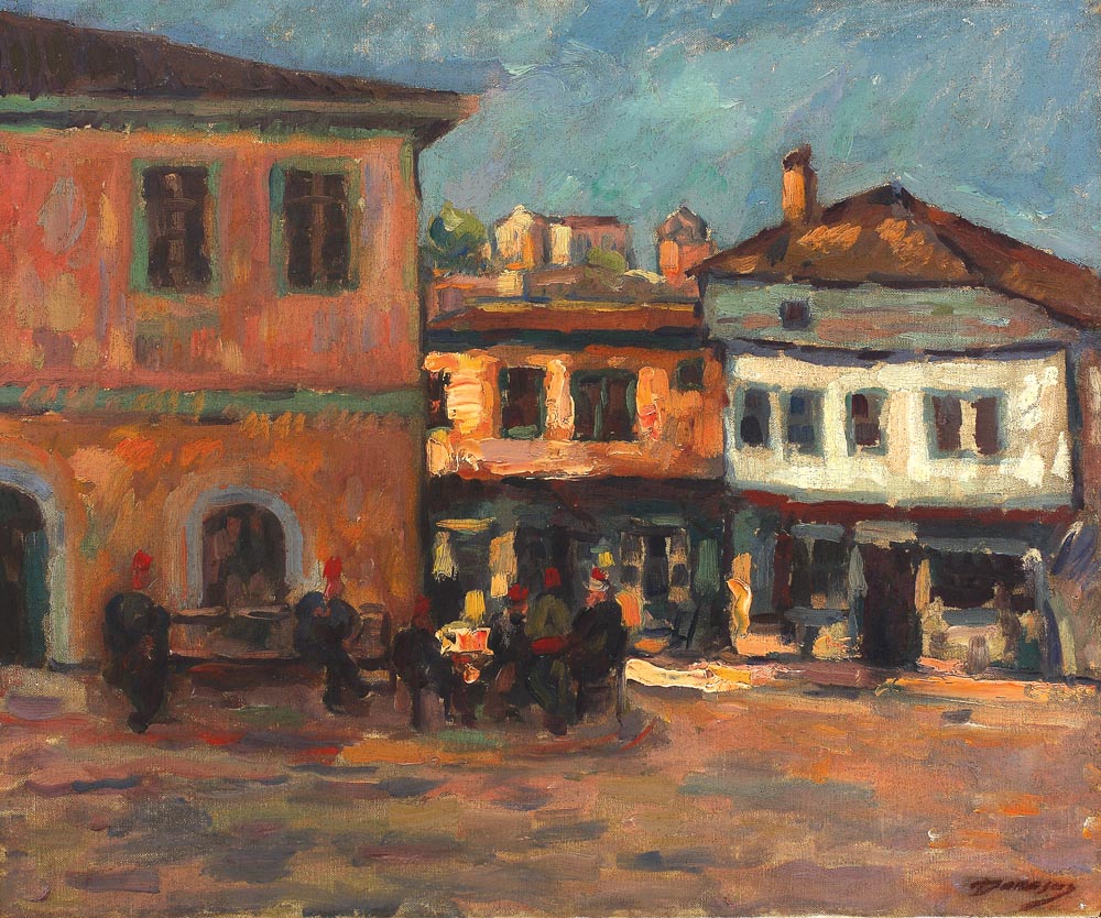Pe verso etichetă de participare în ‘‘Expoziția Nicolae Dărăscu în colecții bucureștene’’, 1996, Muzeul Național de Artă al României’’ Student al lui G. D. Mirea și al lui Ipolit Strâmbu, Nicolae Dărăscu și-a continuat studiile la Paris unde a frecventat Academia Julian şi a studiat cu Jean Paul Laurens. Atras de noua pictură franceză, Dărăscu a vizitat colecţiile, muzeele, expoziţiile pariziene și a frecventat atelierele impresioniste. În 1907 a fost admis la Academie, în atelierul lui Luc Olivier Merson. Dărăscu a preferat studiul după natură normelor academice, motiv pentru care a călătorit în luminoasa Bretanie, unde s-a stabilit ulterior pentru o perioadă, la Saint Tropez. A fost o perioadă a contrastului simultan optic, practicat de impresionişti. Neoimpresionismul propus de Signac şi Seurat, a tehnicii divizioniste, a fost exploatat în realizarea a numeroase acuarele cu motive acvatice ori peisaje din Midi(Sudul Franței). Dărăscu nu a ajuns la rigoarea geometrică practicată de Signac pentru că nu a renunțat niciodată definitiv la tradițiile artei românești. Reîntors în țară a lucrat la Vlaici, unde fusese invitat de faimosul colecţionar Alexandru Bogdan-Piteşti.
