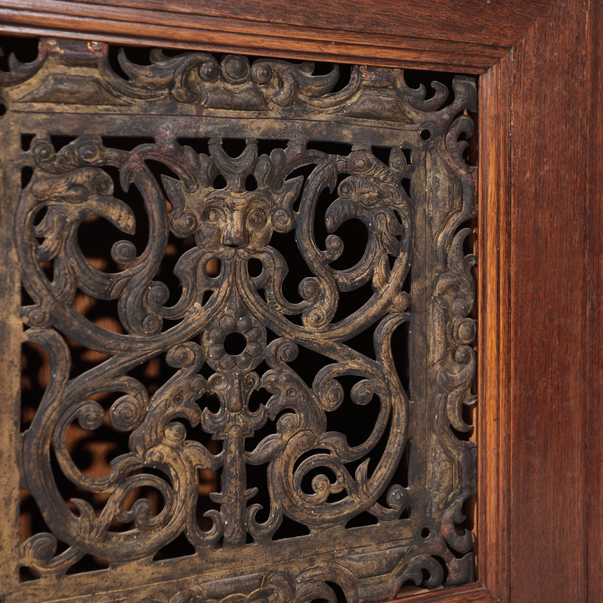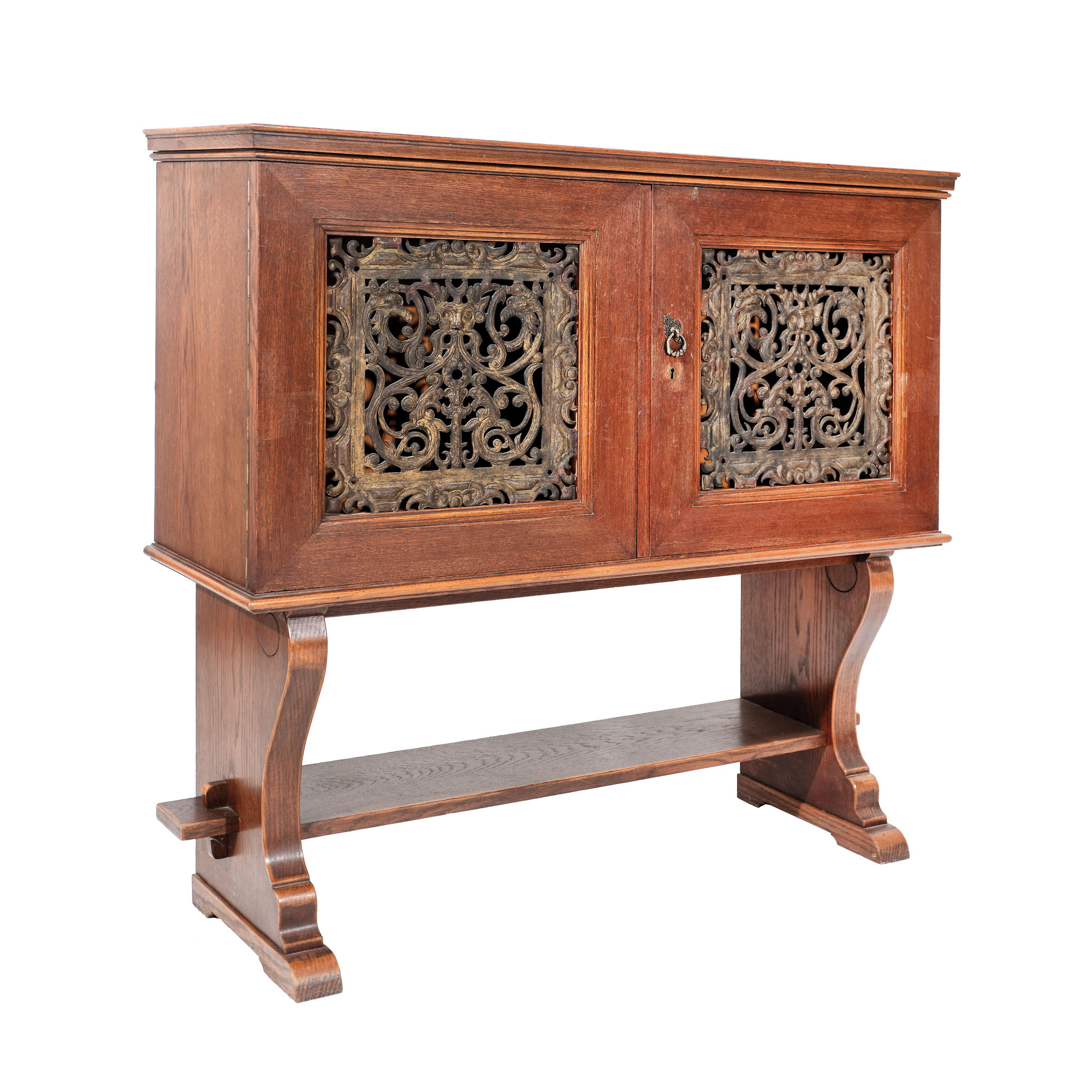 126. Cabinet Neo-Renaștere, decorat cu panouri din bronz, ornate cu mascheroni și vrejuri vegetale, sfârșitul sec. XIX, provine din colecția istorică Șerban Țuculescu-Maria Galaction