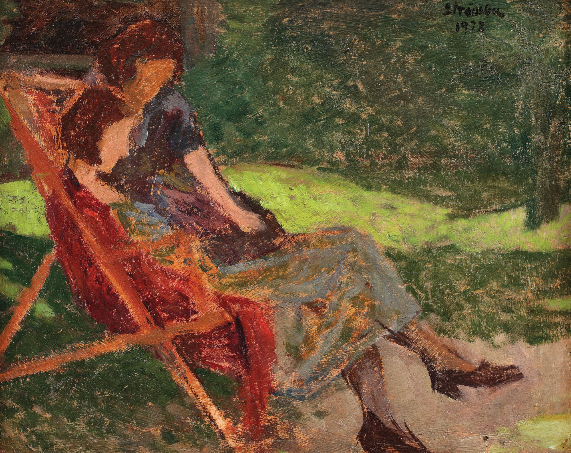 semnat și datat dreapta sus, cu negru, "Strâmbu, 1928"