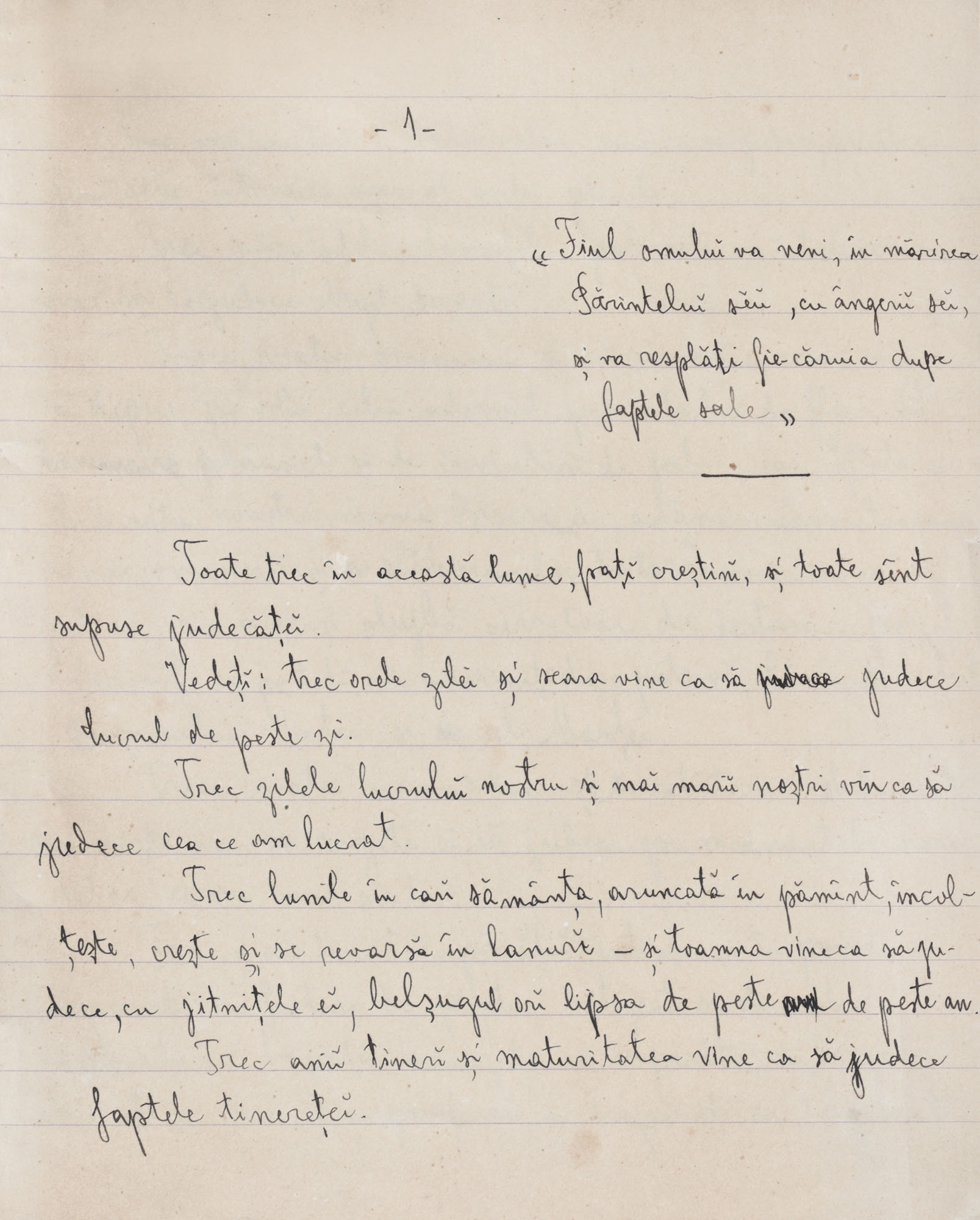 87. Manuscris olograf al primei predici rostite de Gala Galaction, Mănăstirea Radu Vodă, 17 Februarie 1902, provine din colecția istorică Șerban Țuculescu-Maria Galaction