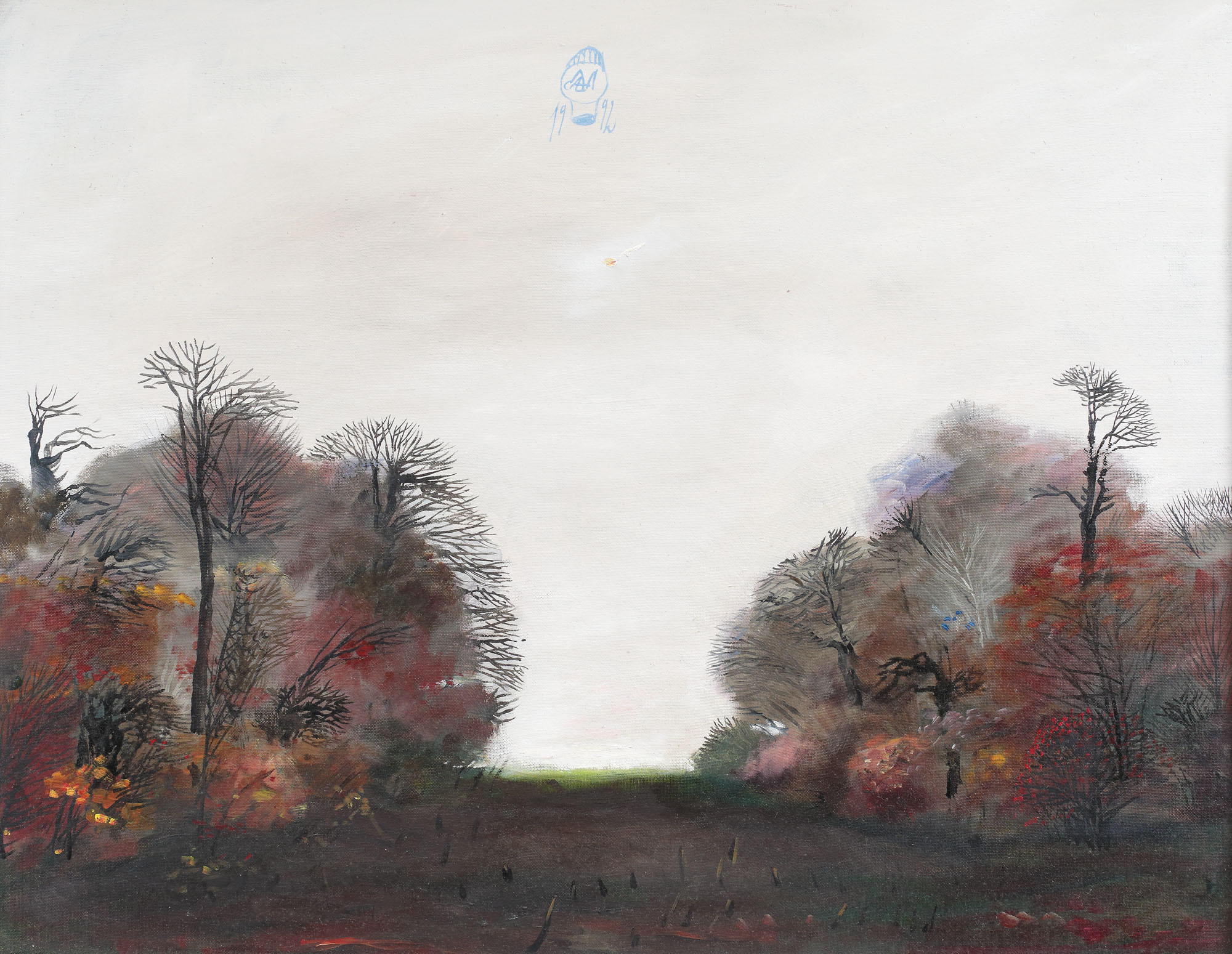 semnat și datat central sus, cu albastru, în monogramă, ”Câlția, 1992”