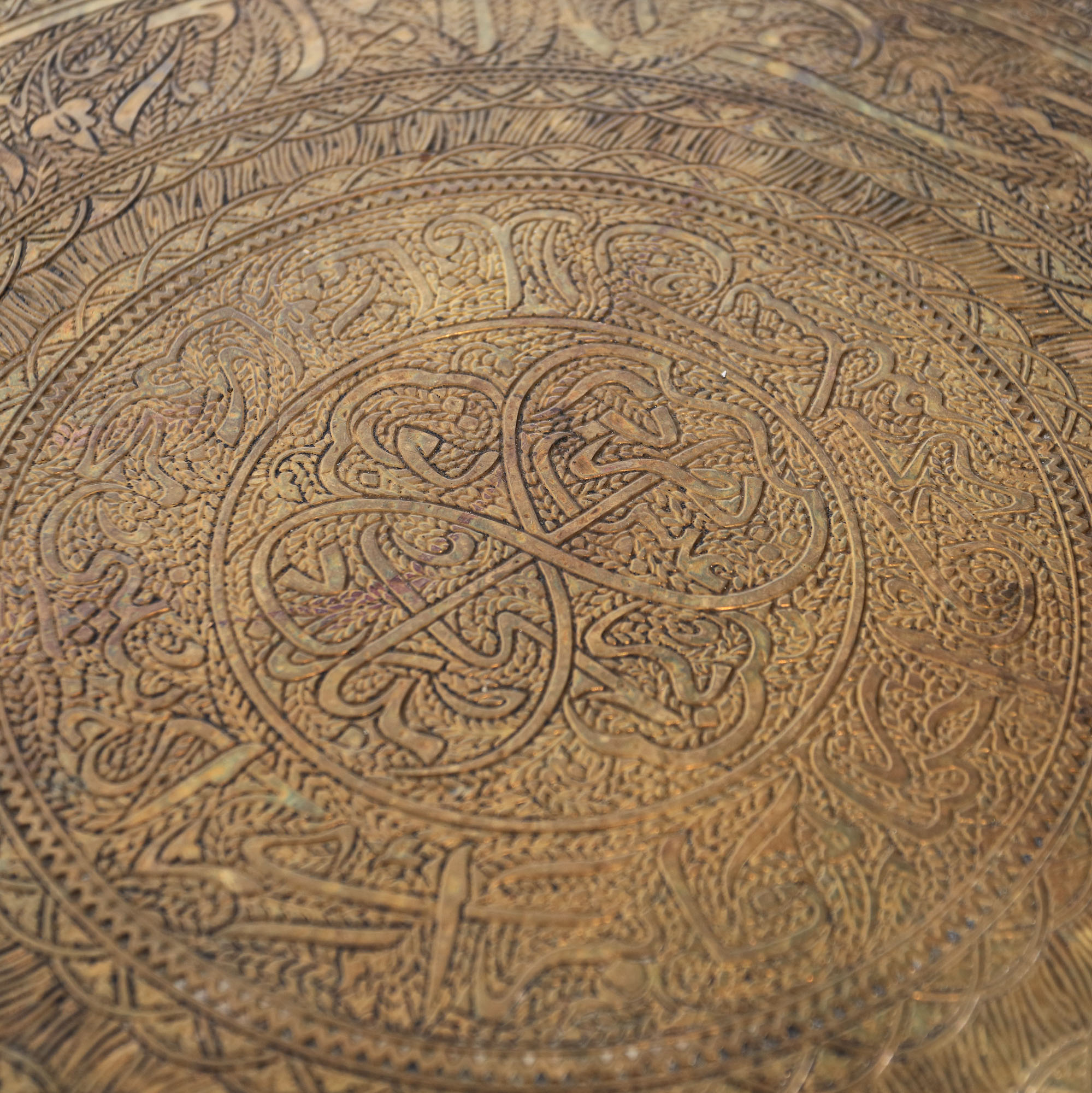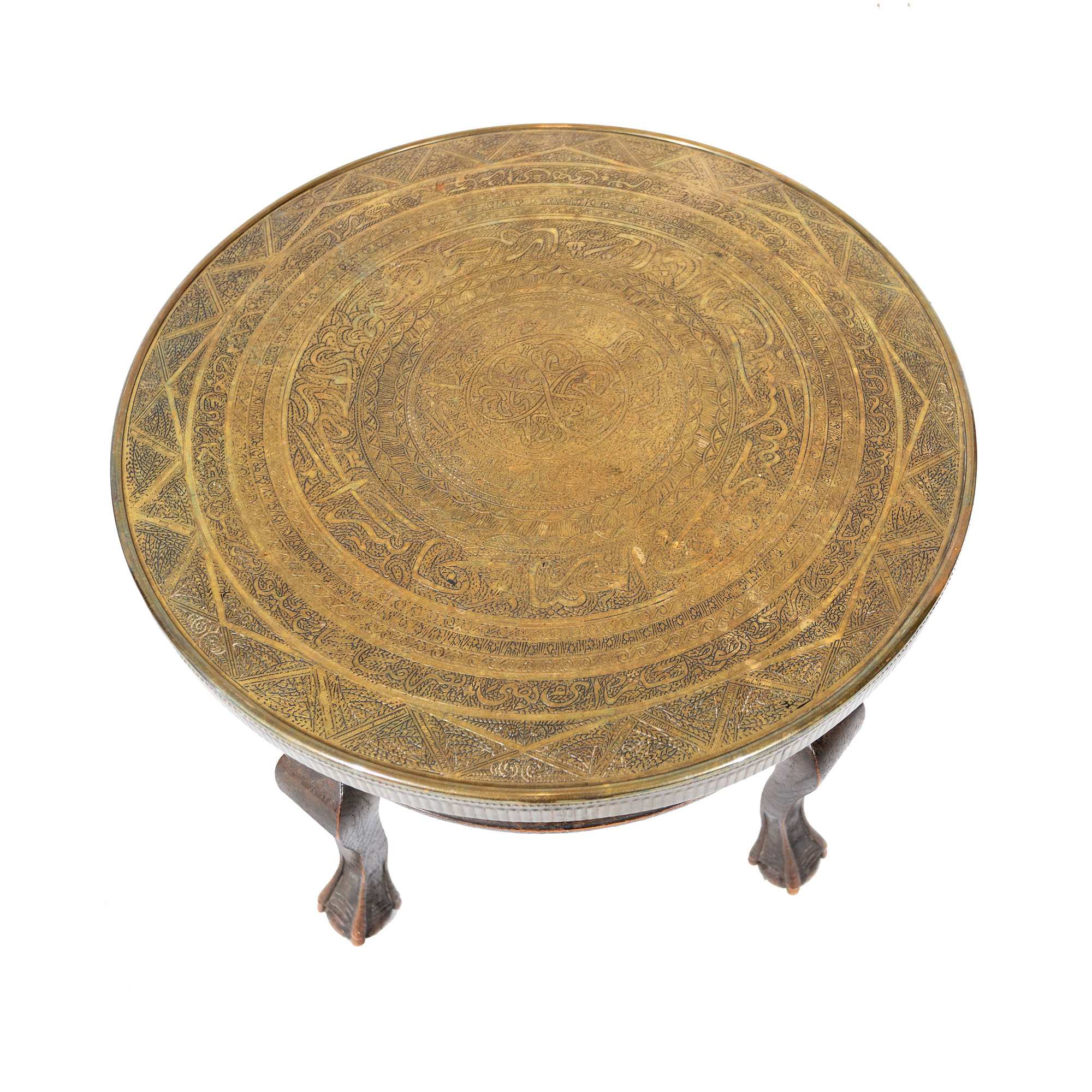 131. Măsuță pentru ceai, blat din alamă ornat cu arabescuri, cca. 1925, provine din colecția istorică Șerban Țuculescu-Maria Galaction