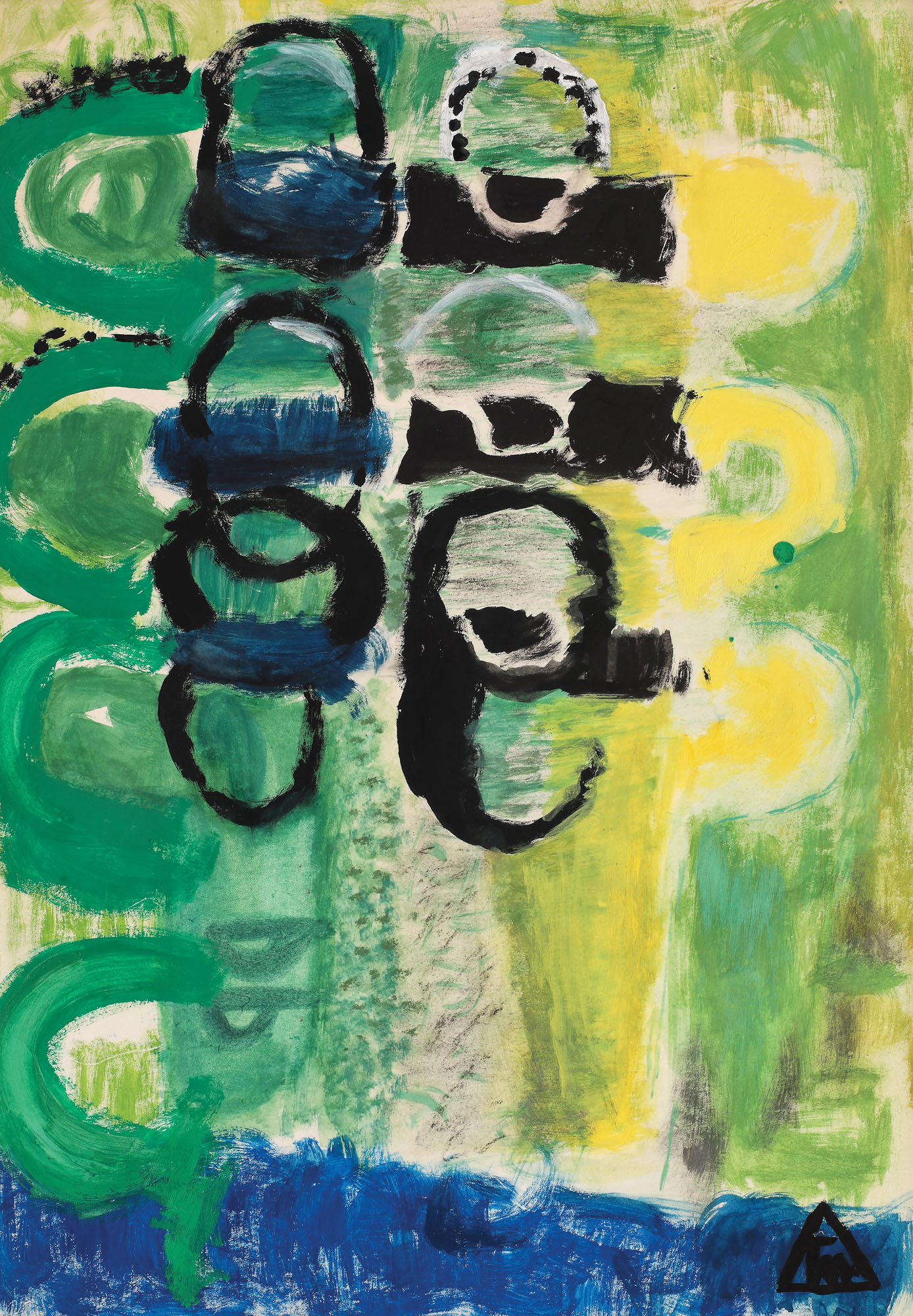 semnat dreapta jos, cu negru, în monogramă, "TUC"
