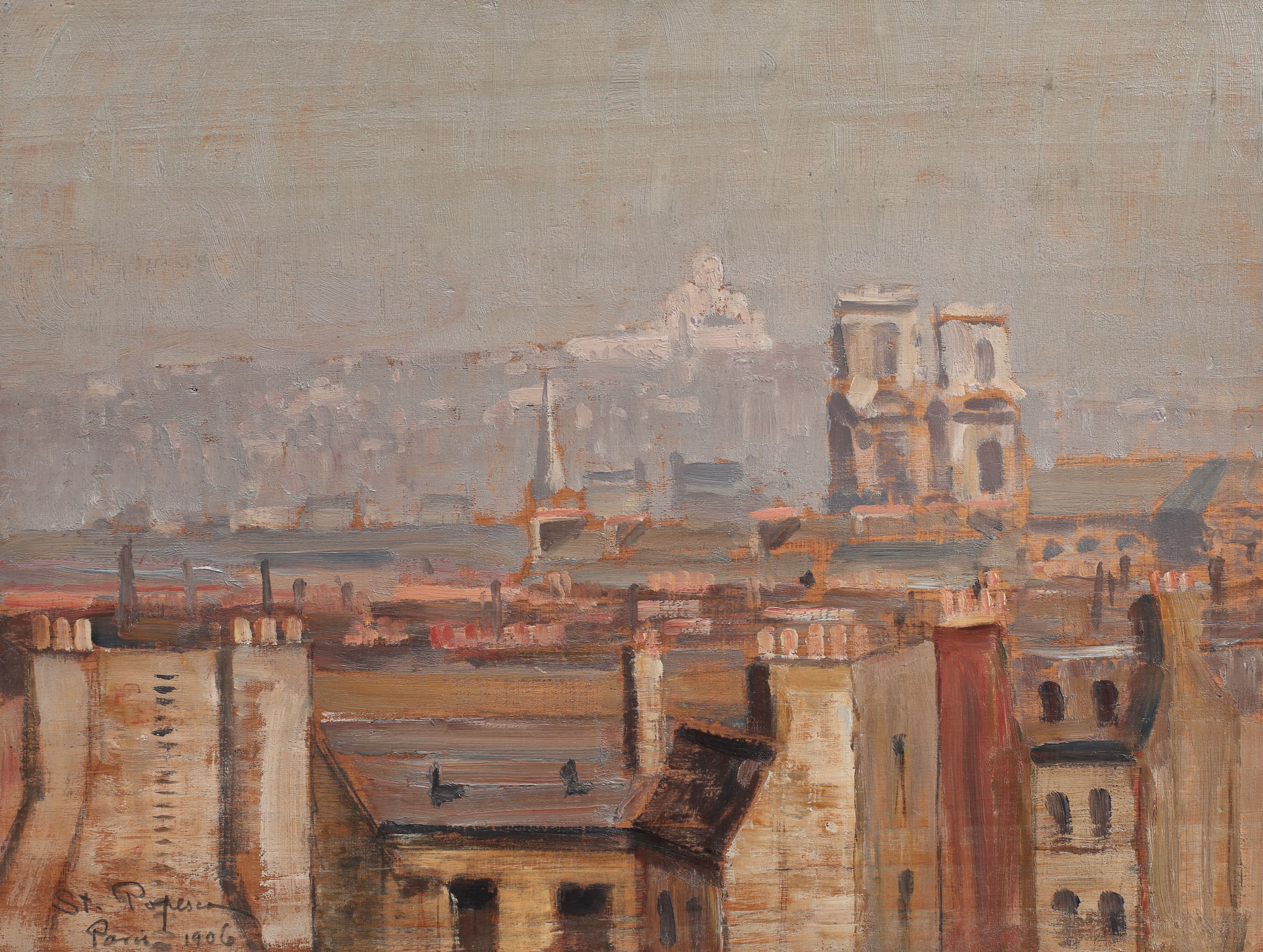 Ștefan Popescu ajungea în Paris în cursul anului 1900, cu scopul de a-și continua educația artistică, după cei 7 ani petrecuți în Munchen. Se va integra imediat în comunitatea studenților români de la Paris, va lua parte la organizarea Tinerimii Artistice și se va dedica picturii, luându-l drept maestru pe Lucien Simon. Va locui în Franța până în preajma izbucnirii Primului Război Mondial, timp în care va lua parte activ la expozițiile pariziene sau la sejururi artistice în Bretania. În cursul anului 1906, Popescu locuia pe Bd. Raspail la nr. 236, chiar în apropierea Cimitirului Montparnasse.