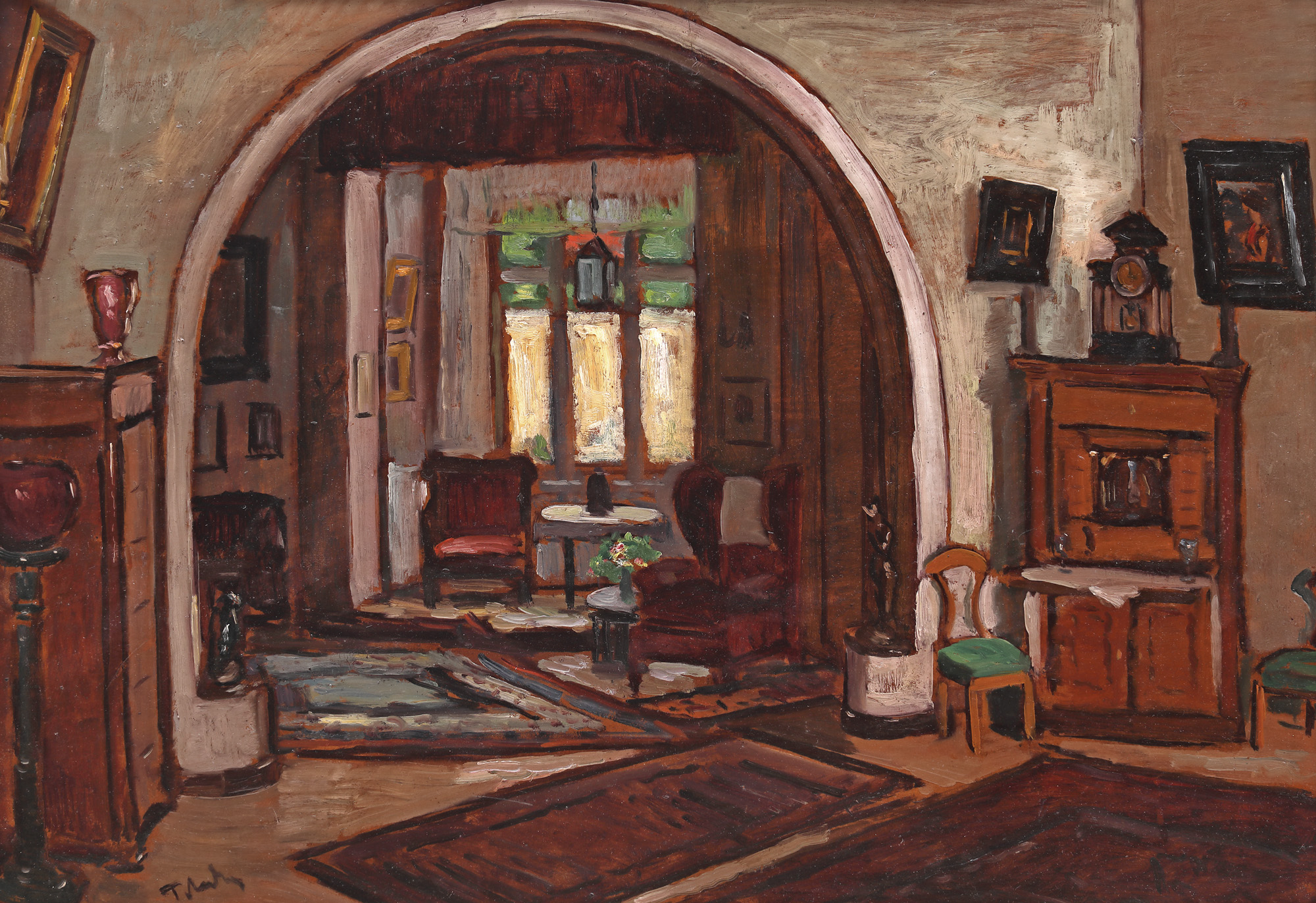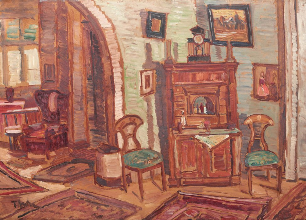 Tibor Erno va zugrăvi adesea în pânzele sale arhitectura și culorile orașului în care în care a văzut pentru prima oară lumina zilei. Podurile peste Criș, clădirile construite în manieră secession, tramvaiele vechi și mașinile de epocă inundă creațiile realizate de artist în atelierul său din Oradea. În 1904 îl găsim pe Tibor Erno în rândul studenților Academiei de Artă din Budapesta. Aici, tânărul realizează copii după operele consacrate ale artei universale și efectuează studii de desen și culoare. Va prelua, în această etapă a evoluției sale, apetența pentru naturalism, interesul pentru lumină, pentru reliefarea volumelor și pentru redarea vibrației culorii. Se înscrie apoi la Academia Julian din Paris, unde are loc primul său contact cu impresionismul, pe care îl va asimila în manieră proprie. Pictează în plein-air, însă optează pentru tonuri mult mai reci decât cele propuse de efervescența artistică pariziană. Întors la Oradea, deschide prima sa expoziție personală, care abundă în peisaje și portrete. Surprinde viața pitorească, târgurile și bâlciurile din apropierea Oradei într-o cromatică vie, luminoasă, cu detalii minuțios lucrate. În 1925 ajunge din nou la Paris, unde transcrie, cu tușele sale specifice, fastuoasele catedrale, muzee și clădiri. Călătorește apoi în Italia, unde expresivitatea sa cromatică va descifra pe pânză bărcile cu pânze sau porturile venețiene. Prima sa expoziție personală organizată în capitala Franței îl consacră în rândul membrilor Salonului Independenților. În a doua etapă a creației sale artistice, Tibor Erno preia din caracteristicile specifice fovismului, se inspiră din opera lui Cézanne, recurge la contraste puternice și utilizează conturul negru. Deși reduse din punct de vedere numeric, interioarele pictate de artist demonstrează capacitățile sale de organizare compozițională. Prin structura clară, bine elaborată, acesta elucidează probleme picturale și pune în relief linia sigură a desenului. Măiestria lui Tibor Erno ni se relevă îndeosebi în acest gen de compoziție. Artistul lucrează minuțios, cu detalii expresive și pune astfel în valoare mobilierul, covoarele și obiectele decorative. Optează pentru o paletă cromatică prin care sugerează o atmosferă intimă și tihnită, eliberată de orice artificii neesențiale.