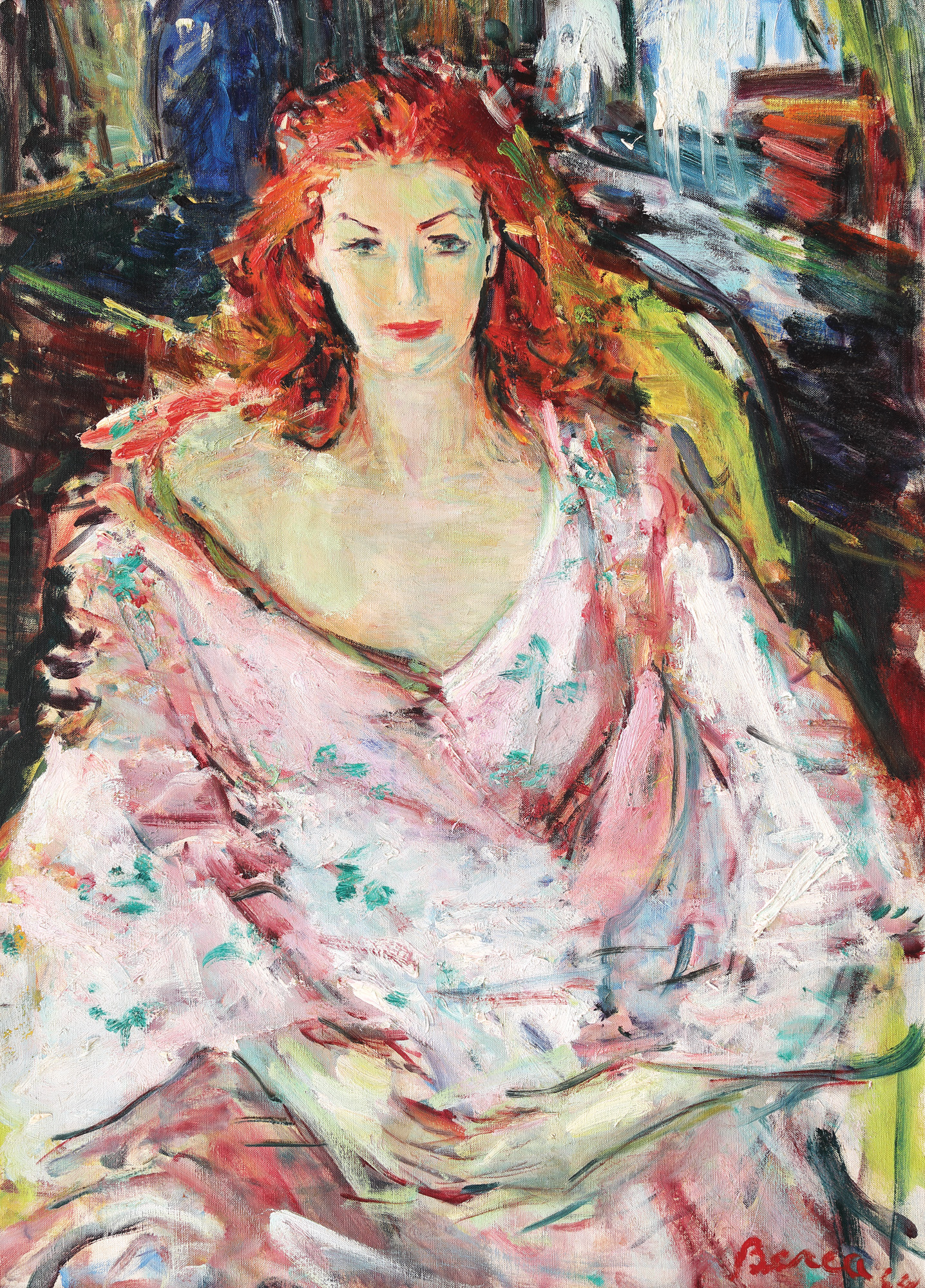 Parcursul artistic al lui Dimitrie Berea va urma, inițial, asemenea multor altor artiști contemporani lui, calea deschisă a Parisului. Pictorul se va stabili, în final, dincolo de ocean, în Statele Unite ale Americii. Se afirmă atât ca desenator, cât și în postura de colorist. În faza inițială a creației sale, la București, își exersează calitățile de portretist și cercetează îndelung psihologia ființei umane. Constantă a operei sale – invazia culorii – îl va urmări în toate etapele carierei sale artistice. Exilul în afara granițelor țării se va transcrie în prietenii cu personalități de marcă ale vremii: Dali, Picasso, Brâncuși, Derain și Dufy. La Paris, Monte Carlo sau Nisa, Dimitrie Berea expune alături de Bonnard, Matisse sau Picasso. În anii ’60, artistul a acceptat numeroase comenzi de la personalități artistice și figuri celebre ale perioadei. Devine unul dintre pictorii oficiali ai starurilor de la Hollywood, astfel că va ajunge să picteze individualități precum: Salomé Murat, Dali, actrițele Luise Rainer, Merle Oberon, Katharine Hepburn sau Nancy Reagan. Lucrează la Paris, New York și San Francisco, acolo unde își avea locuințele-atelier. Operele sale se află în muzee importante din Roma, Madrid, Londra, Paris, New York, San Francisco sau Vatican. Dintre colecțiile reputate care au inclus lucrări semnate de Berea, amintim: Winston Churchill, Ducele și Ducesa de Winsdor, Henry Ford II, Salvador Dali sau Regina Elizabeta a II-a a Angliei. În opera de față, artistul își îndreaptă atenția către transpunerea pe pânză a lui Eunice Gardiner. Originară din Londra, aceasta debutează ca model pentru Christian Dior la Paris. A pozat, de asemenea, pentru Vogue, Harper’s Bazaar sau Junior Bazaar. A fost membru fondator al Ford Modelling Agency și a studiat arta și moda la Torino, în Italia. În 1967, Eunice Gardiner i-a servit drept muză și lui Dali, care a consemnat prezența frumosului model în maniera sa specifică, într-o lucrare cu accente suprarealiste.