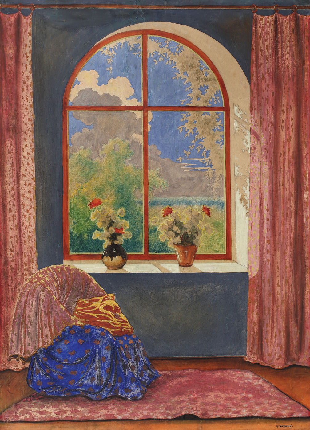 guașă pe hârtie lipită pe carton