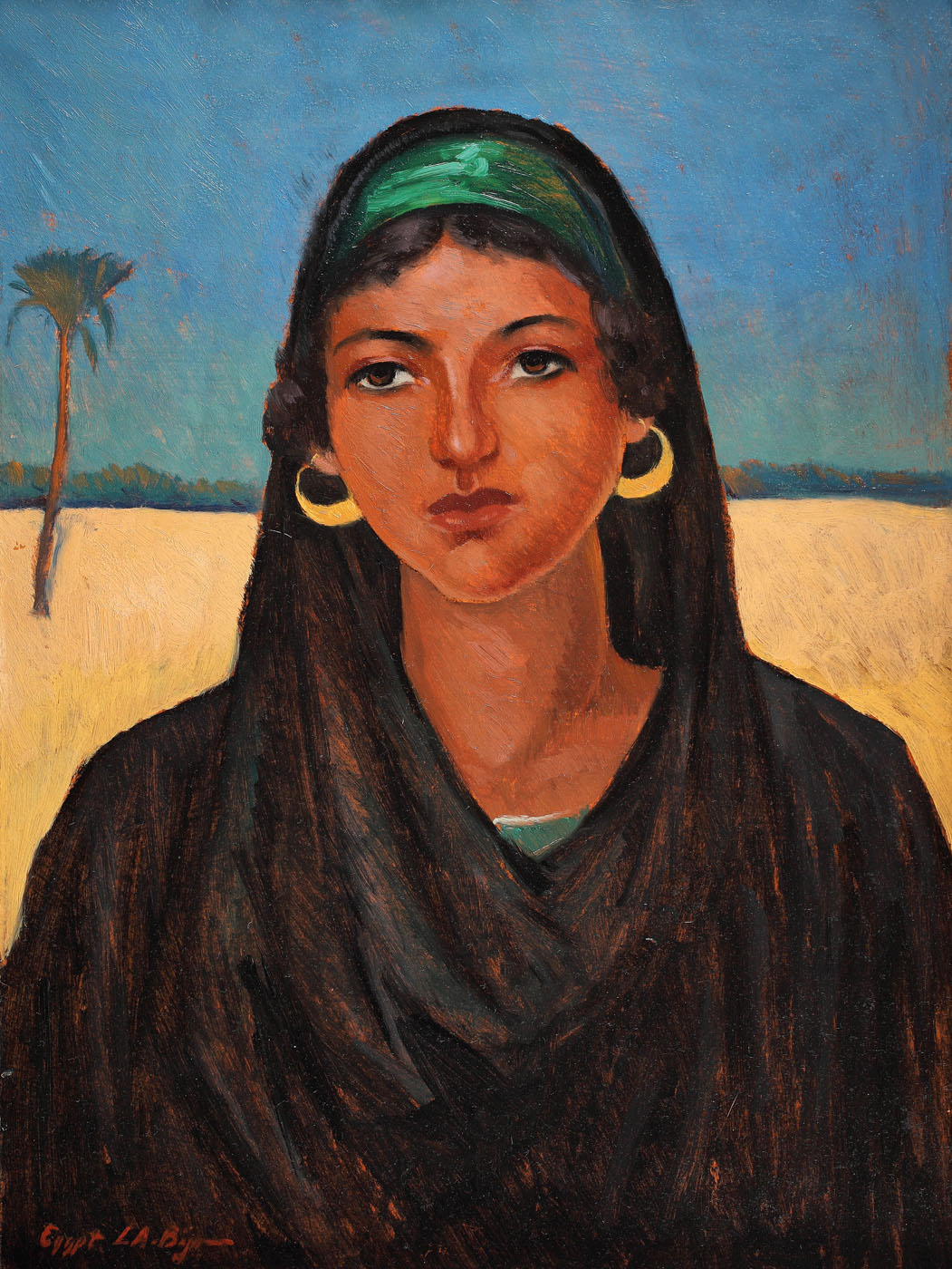 semnat şi localizat stânga jos, cu roşu, "Egypt, L.A. Biju"