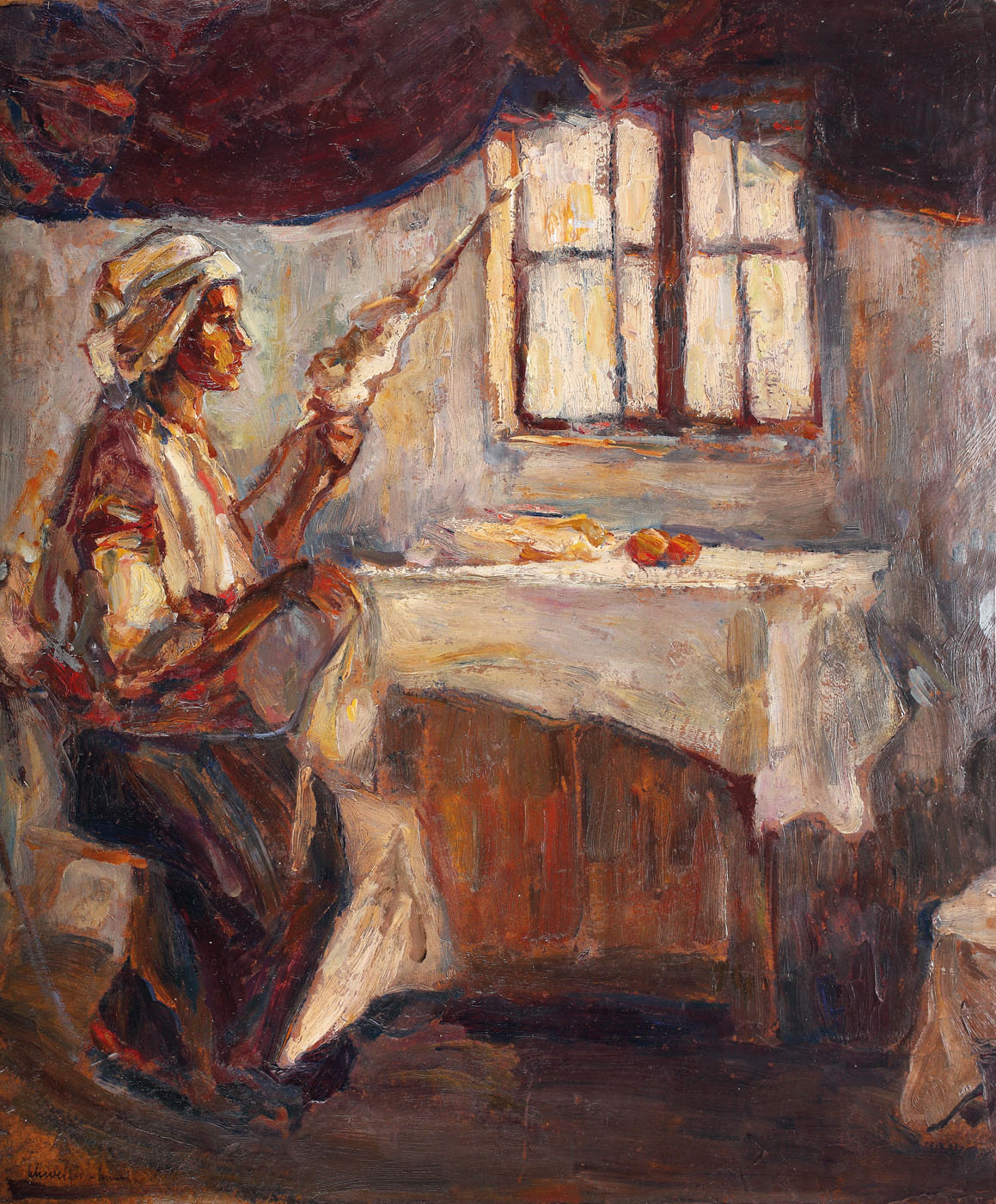 semnat stânga jos, cu brun, "Schweitzer-Cumpăna"