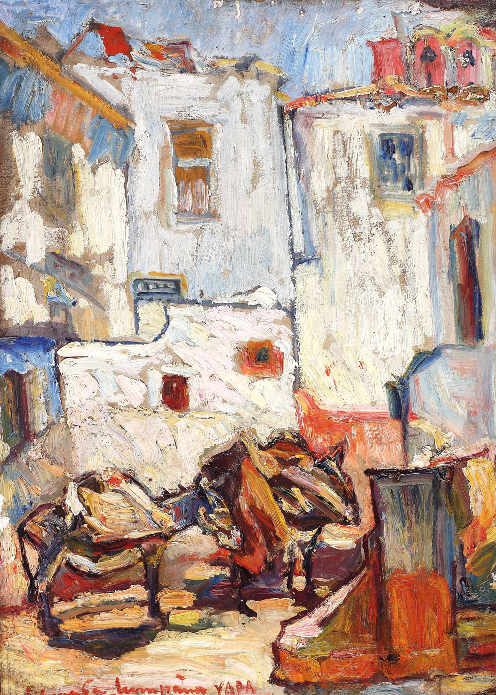 semnat, datat și localizat pe verso, în creion, "Schweitzer-Cumpăna, Insula Hydra/Atena, 1929"