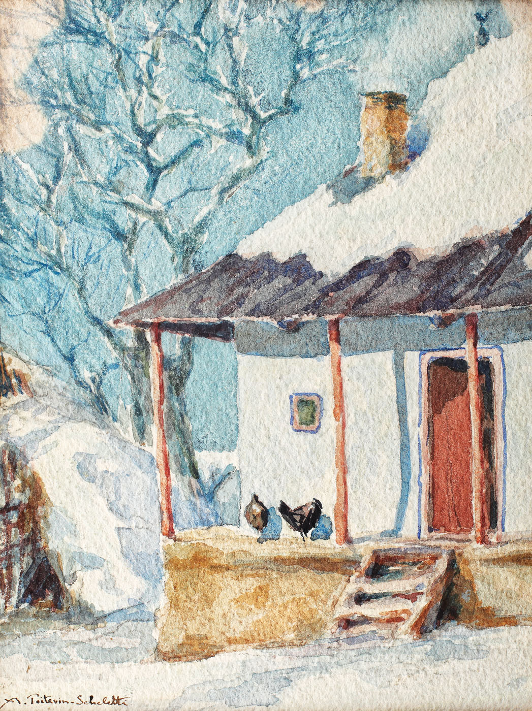 semnat stânga jos, în peniță, "A. Poitevin-Scheletti"