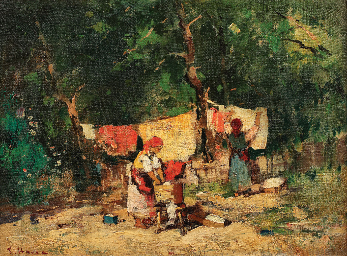 semnat stânga jos, cu brun, "T. Harşia"