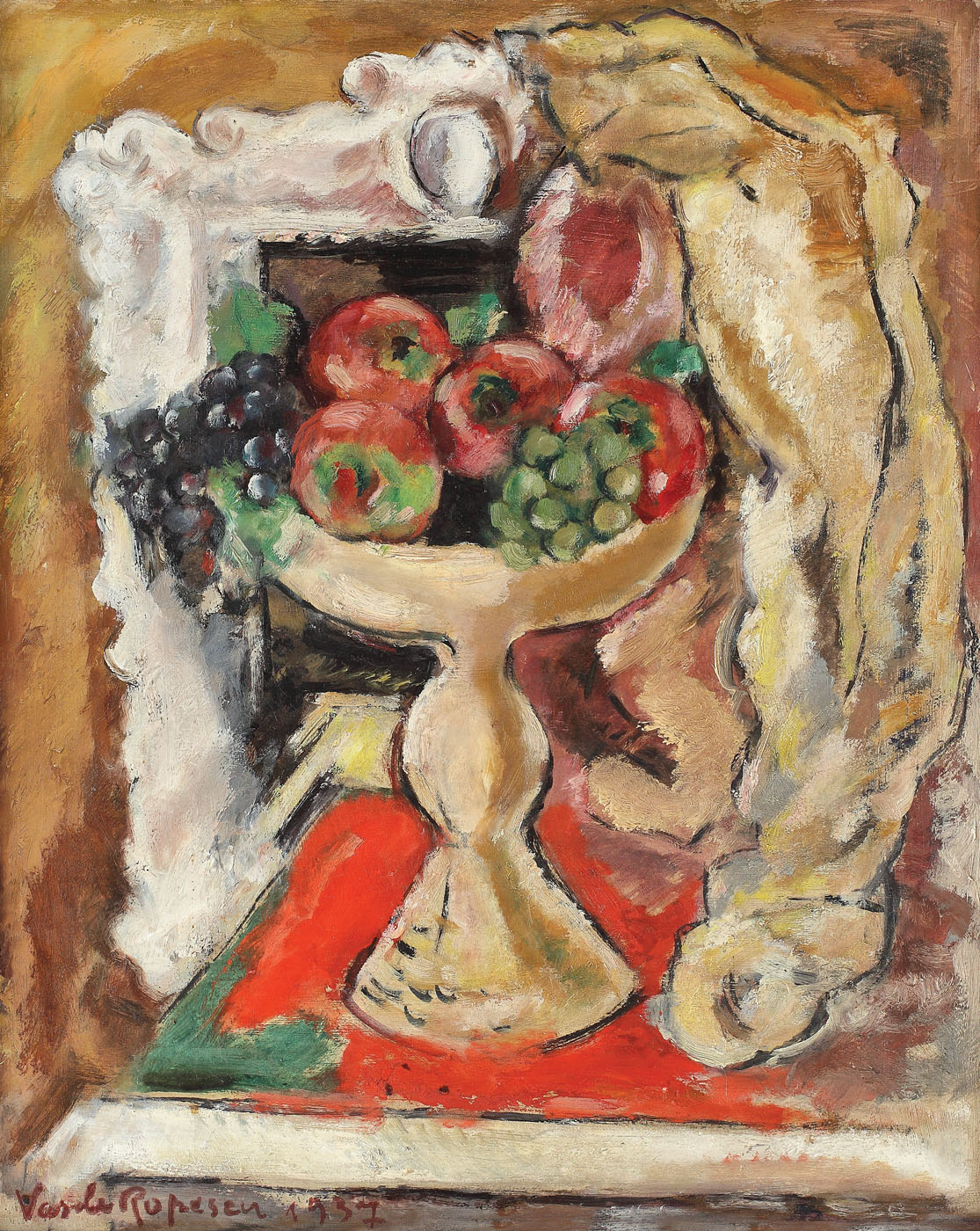 semnat și datat stânga jos, cu brun, "Vasile Popescu, 1937"