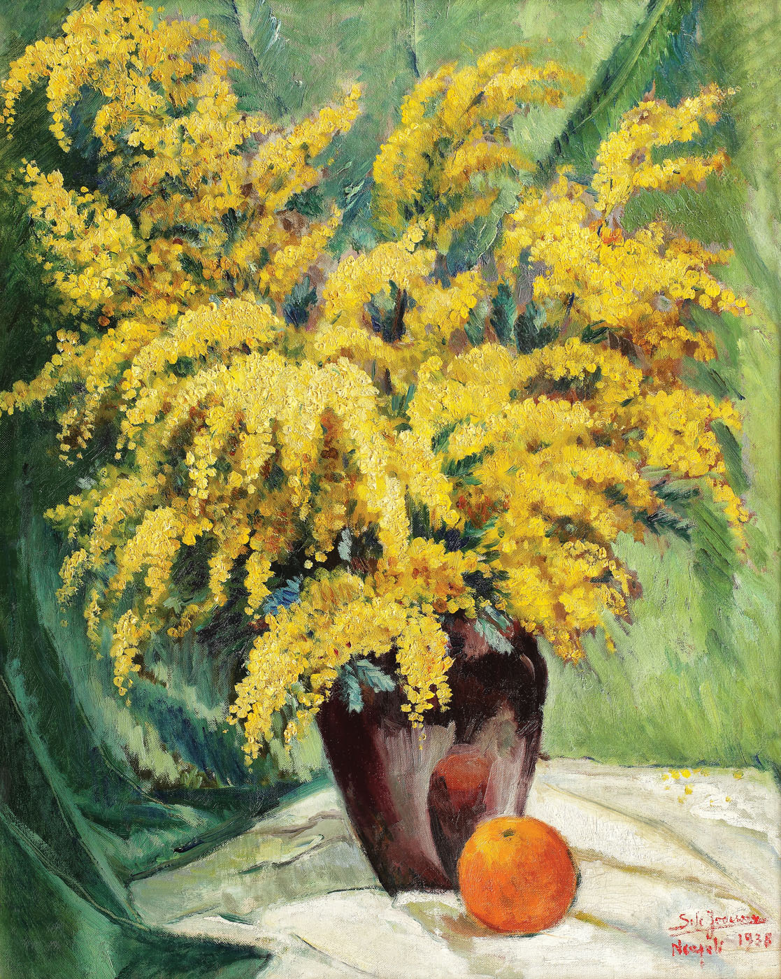 semnat, datat și localizat dreapta jos, cu roșu, "Sile Ionescu, 1938, Neapoli"