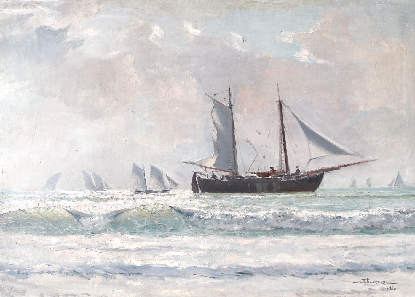 semnat și datat dreapta jos, cu negru, "Știubei, 1926"