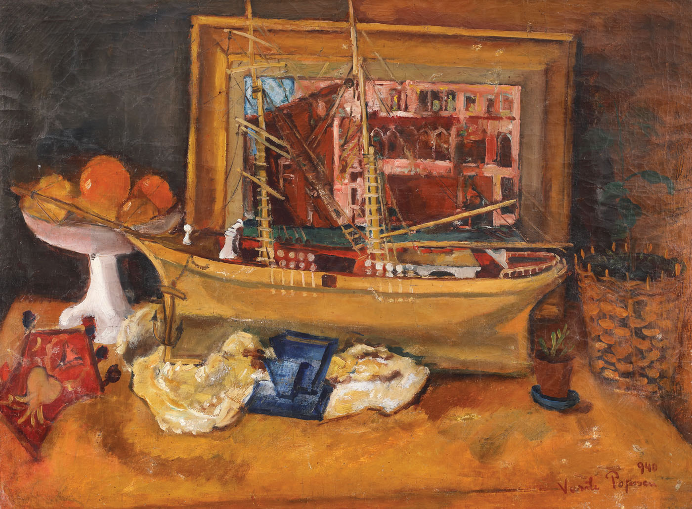 78. Natură statică cu corabie și fructieră [1940]
