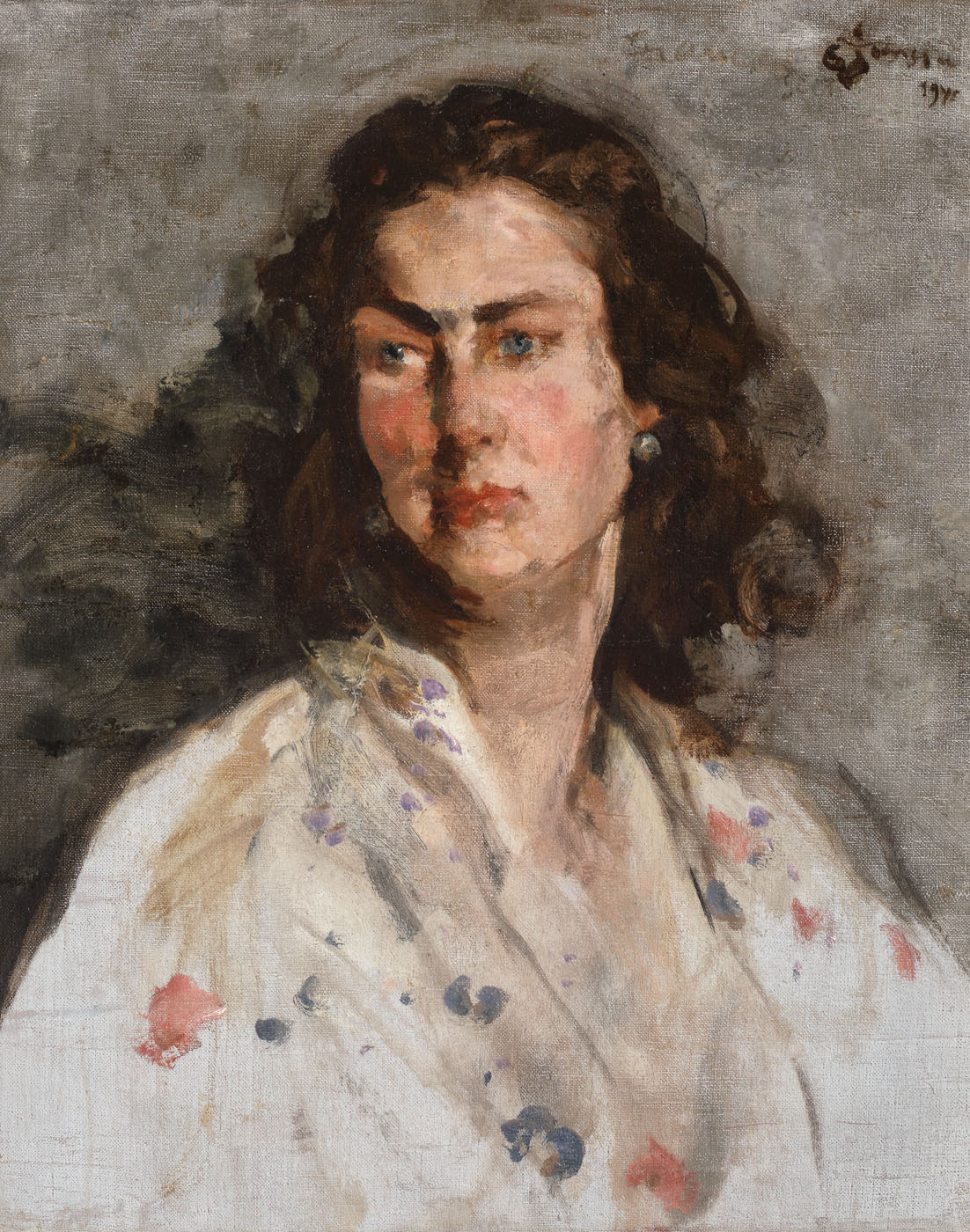 Eustațiu Stoenescu a fost cel mai important portretist român al primei jumătăți a secolului XX, făcând cu adevărat o carieră atât în România, cât și în străinătate, în special în Franța. Urmându-i lui G.D. Mirea în fruntea portretisticii românești, Stoenescu avea să reconfigureze calitățile portretului, depășind cu ușurință standardul academist pe care îl instituise Mirea încă de la sfârșitul sec. al XIX-lea. Maniera postimpresionistă, introspecția psihologică și acea atmosferă atinsă prin griurile ce îl compară deseori cu maniera lui Whistler sunt principalele unelte cu care Stoenescu acapara pictura de portret din perioada interbelică. Clientela sa avea să fie din cea mai exclusivă, pictând bancheri, industriași, oameni de cultură, dar mai ales prinții, prințesele și fețele regale ale României. Chipul Domniței Ileana stă lângă portretele regale ale celor 3 regi pe care Stoenescu i-a portretizat, și este totodată unul dintre cele mai târzii, fiind realizat la sfârșitul celui de al Doilea Război Mondial, cu 2 ani înainte ca atât pictorul cât și modelul să părăsească țara.