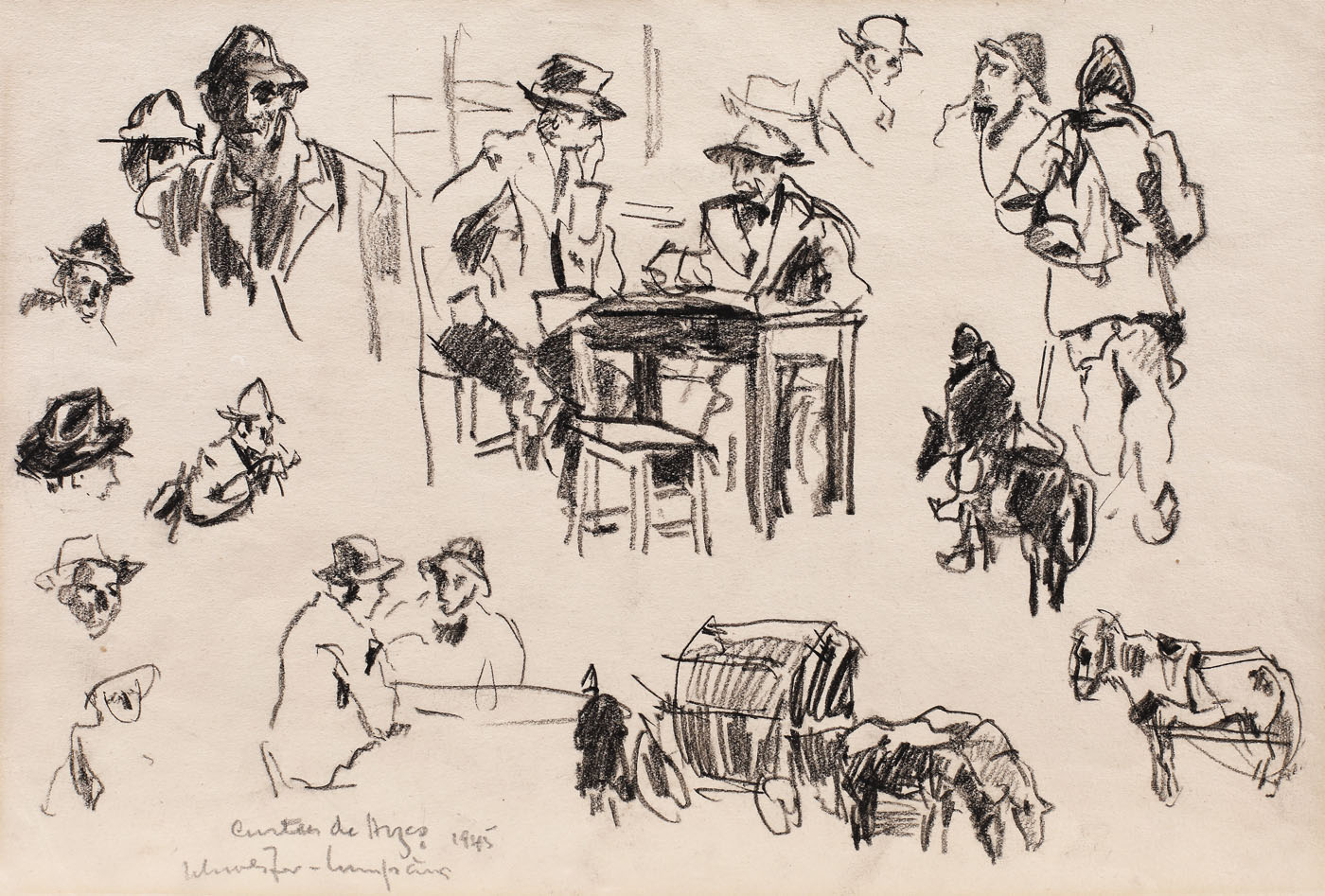 semnat, datat şi localizat, stânga jos, în creion, "Curtea de Argeş, 1945, Schweitzer-Cumpăna"