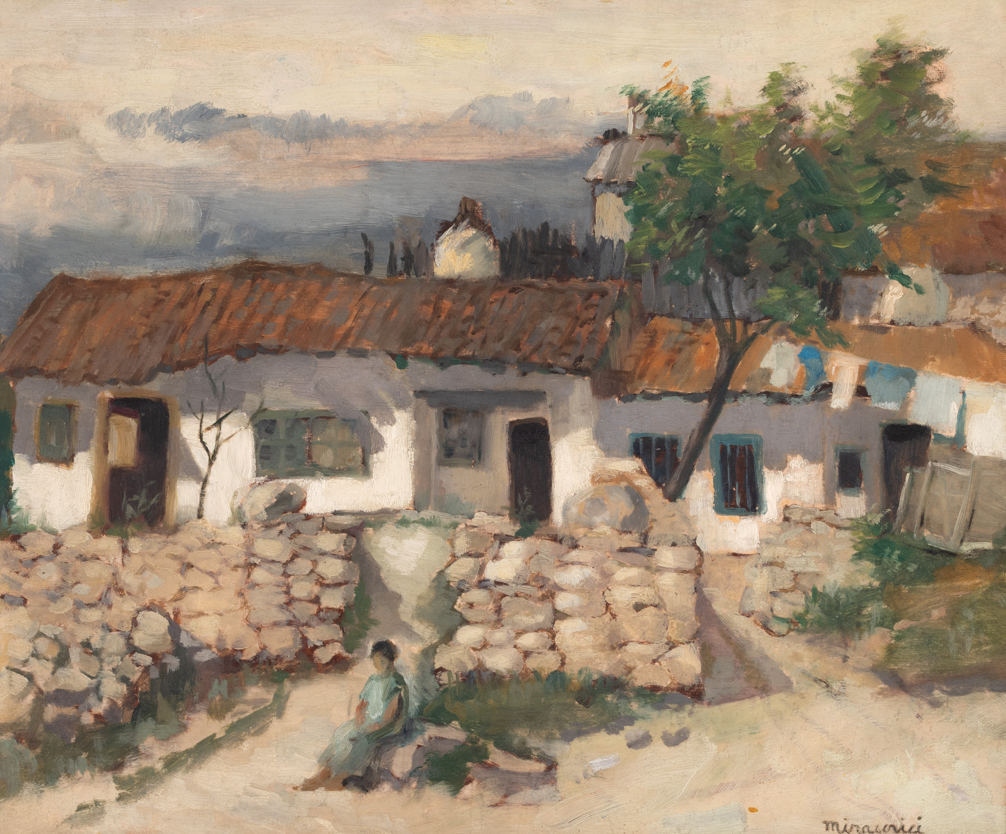Artist, dar și teoretician deopotrivă, Paul Miracovici dezvăluie o tendință stilistcă aparte, marcată de un interes aparte acordat luminii și culorii. Un foarte bun artist decorator, acesta își extinde cu curaj granițele creative, realizând și afișe și picturi murale. Operele sale renunță adesea la detaliu și textură, demonstrând că forma și culoarea sunt suficiente pentru a crea o lucrare poetică și sinceră. Miracovici își pictează frecvent subiectele într-o manieră unitară, ca și cum toate elementele ar împărtăși aceeași materialitate. Această abordare rezonează cu experiența sa ca ilustrator de afișe, o meserie ce presupune claritate și sinteză vizuală. O astfel de viziune se poate observa, de exemplu, în pictura ”Uliță dobrogeană”. Culorile locale sunt suficiente pentru a sugera peisajul, iar umbrele purtate și câteva accente de lumină și întuneric, aplicate în tușe libere și vii, construiesc un cadru cu un stil specific pentru Miracovici. ”În fața casei” păstrează această abordare sintetică, dar introduce o atenție sporită pentru detaliu. Acoperișul casei și gardul de piatră din prim-plan sunt tratate cu un relief mai accentuat. Cerul, plat în ”Uliță dobrogeană”, este aici redat într-un degrade viu, cu o pensulație expresivă. Trunchiul copacului, ușile și ferestrele sunt reprezentate aproape plat. Doar umbrele purtate și mici accente cromatice conferă volum. Ce se poate deduce astfel din opera lui Miracovici, este un atent spirit al observației, o abilitate aparte a esențializării și o admirație sinceră pentru frumusețea naturii.