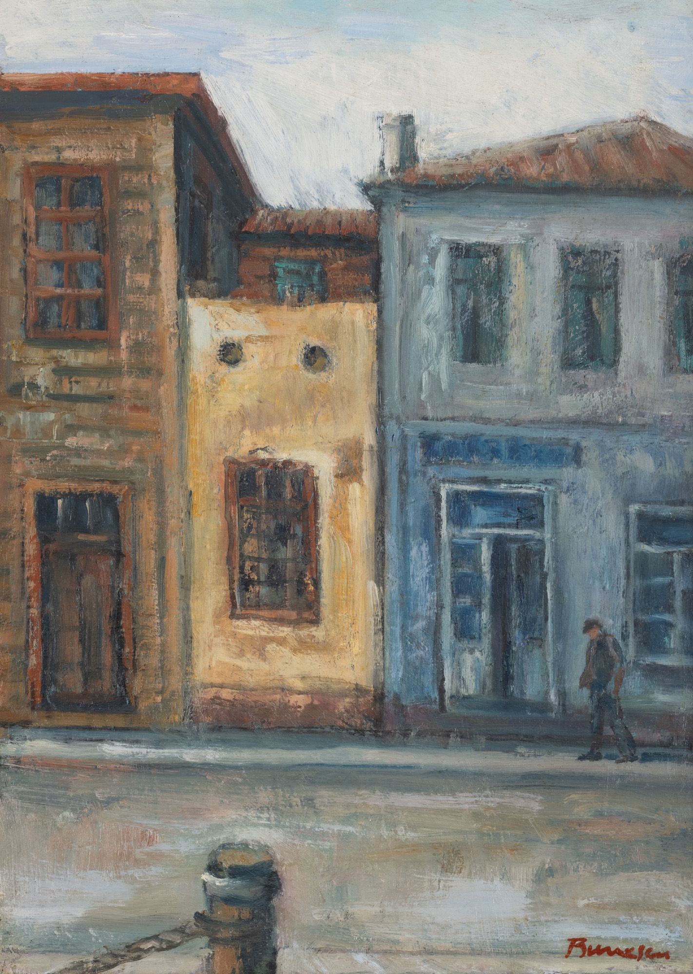 Peisajele urbane și marine au fost, cel mai probabil, subiectele care au definit stilul și direcția artistică a lui Marius Bunescu. Criticul Petru Comărnescu remarca felul în care pictorul oltean s-a desprins de maniera semănătoristă, atât de specifică artei începutului de secol XX, ajungând să propună „ceva nou și propriu, o oglindire a unor aspecte inedite din peisajul țării noastre”. Astfel, Bunescu ajunge la un limbaj vizual plin de poezie, ce împinge către contemplarea unor teme rareori explorate atât de profund de contemporanii săi. Lucrarea analizată se înscrie în această direcție. Prin subiect și atmosferă, ea poate fi apropiată de pictura „Bărci la Sulina”, unde regăsim aceeași abordare contemplativă, lipsită de lirism sau de artificii narative. Ambele compoziții sunt statice, dominate de echilibru și de liniște, fără tensiuni puternice. Totuși, în „Bărci la Sulina”, se simte o ușoară vibrație în structura imaginii, dată de velele înclinate și de prezența discretă a unor personaje surprinse în mijlocul activităților cotidiene, dând locului o notă subtilă de forfotă. În contrast, ”Casă la Sulina” accentuează și mai mult ideea de repaos și de suspendare a timpului. Privitorul are senzația că artistul a izolat un cadru mai restrâns din agitația urbană, alegând să contemple, cu răbdare și tăcere, arhitectura și lumina. Un singur personaj se zărește în dreapta, luând parte la liniștea orașului. Cerul este senin, iar pe fundalul acestuia, siluetele caselor descriu un armonios și variat joc de forme. În prim-plan, Bunescu plasează un par de lemn, un subtil indiciu al profunzimii. Toate aceste detalii au parcă o reținere aparte și contribuie armonios la atmosfera meditativă a întregii lucrări.