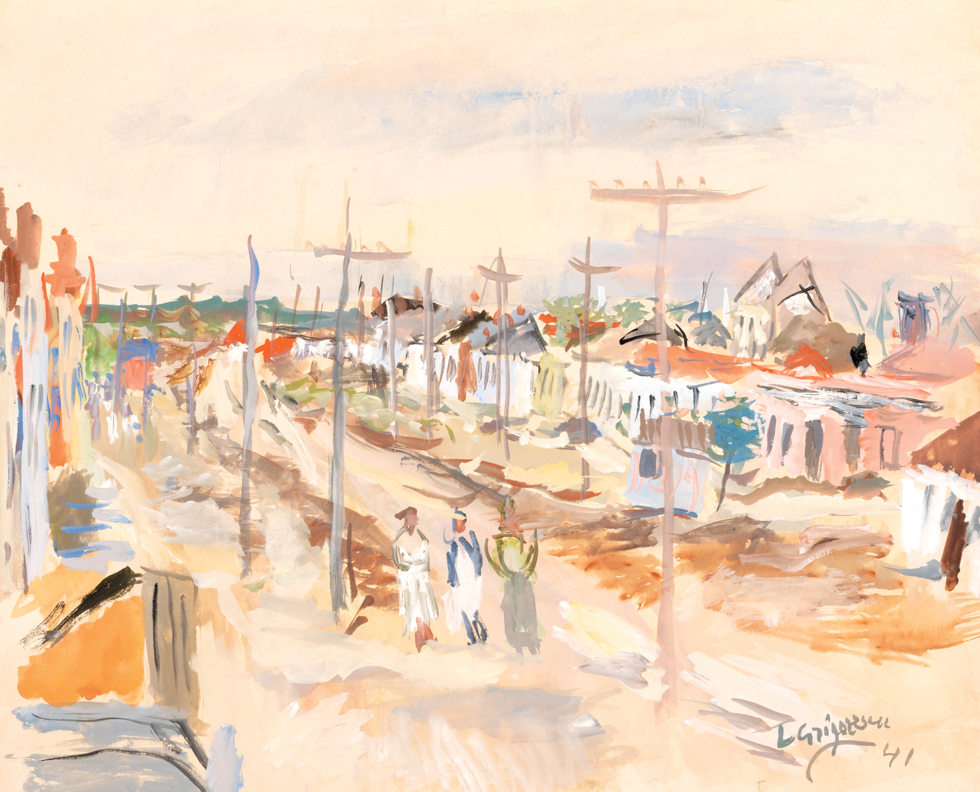 semnat și datat dreapta jos, cu albastru, "L. Grigorescu, (19)41"