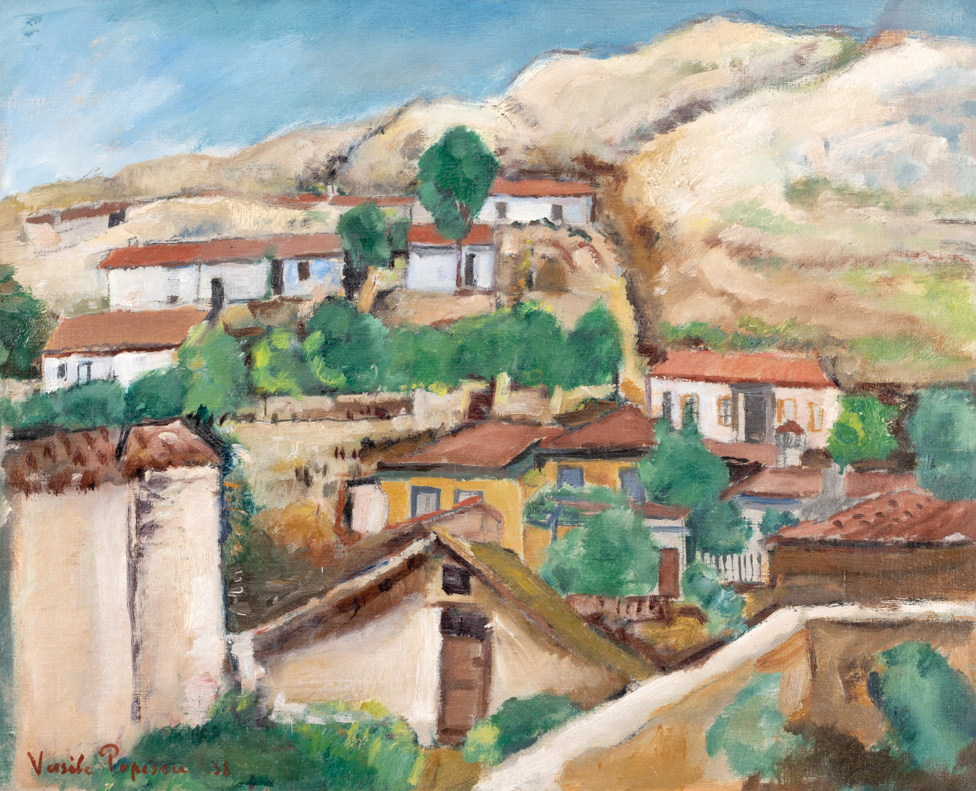 semnat și datat stânga jos, cu roșu, ”Vasile Popescu, (19)38”