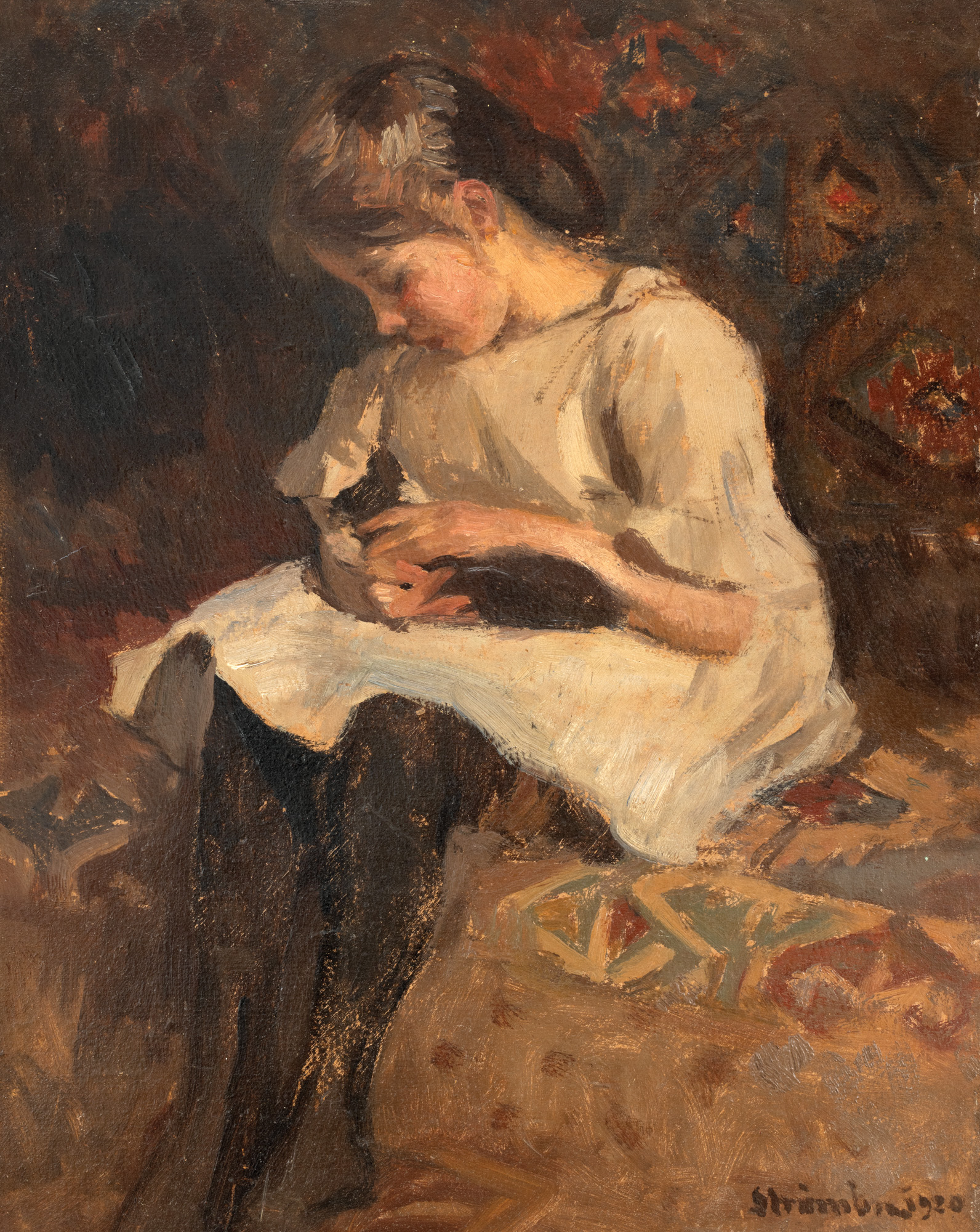 semnat și datat dreapta jos, cu brun, ”Strâmbu, (1)920”