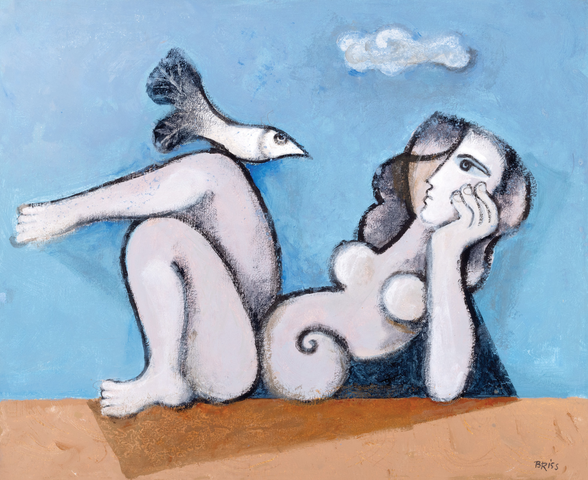 semnat dreapta jos, cu gri, "BRISS"; intitulat pe verso, în creion, "L'oiseau curieux"