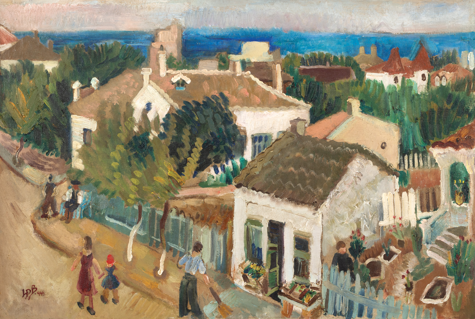 semnat și datat stânga jos, cu brun, ”LDB, (19)44”