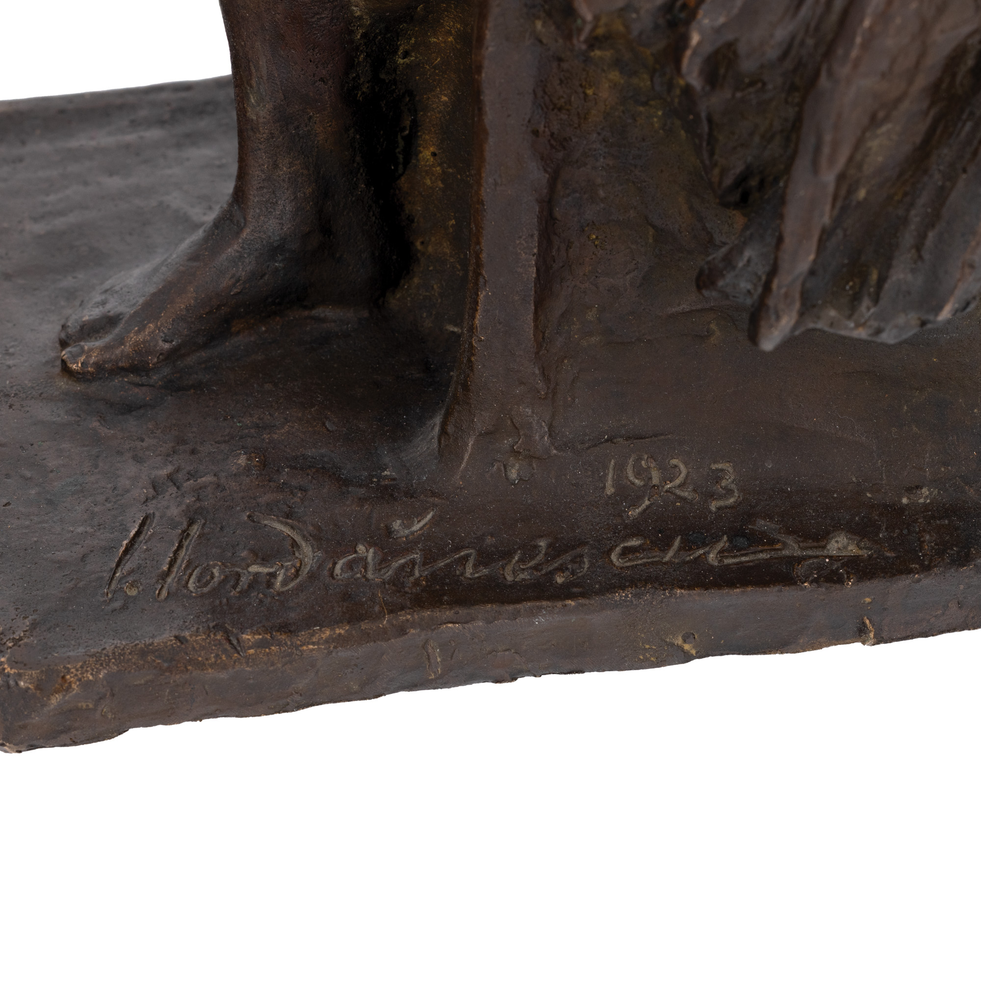 semnat și datat la bază, lateral dreapta, pe soclu, ”I. Iordănescu, 1923”