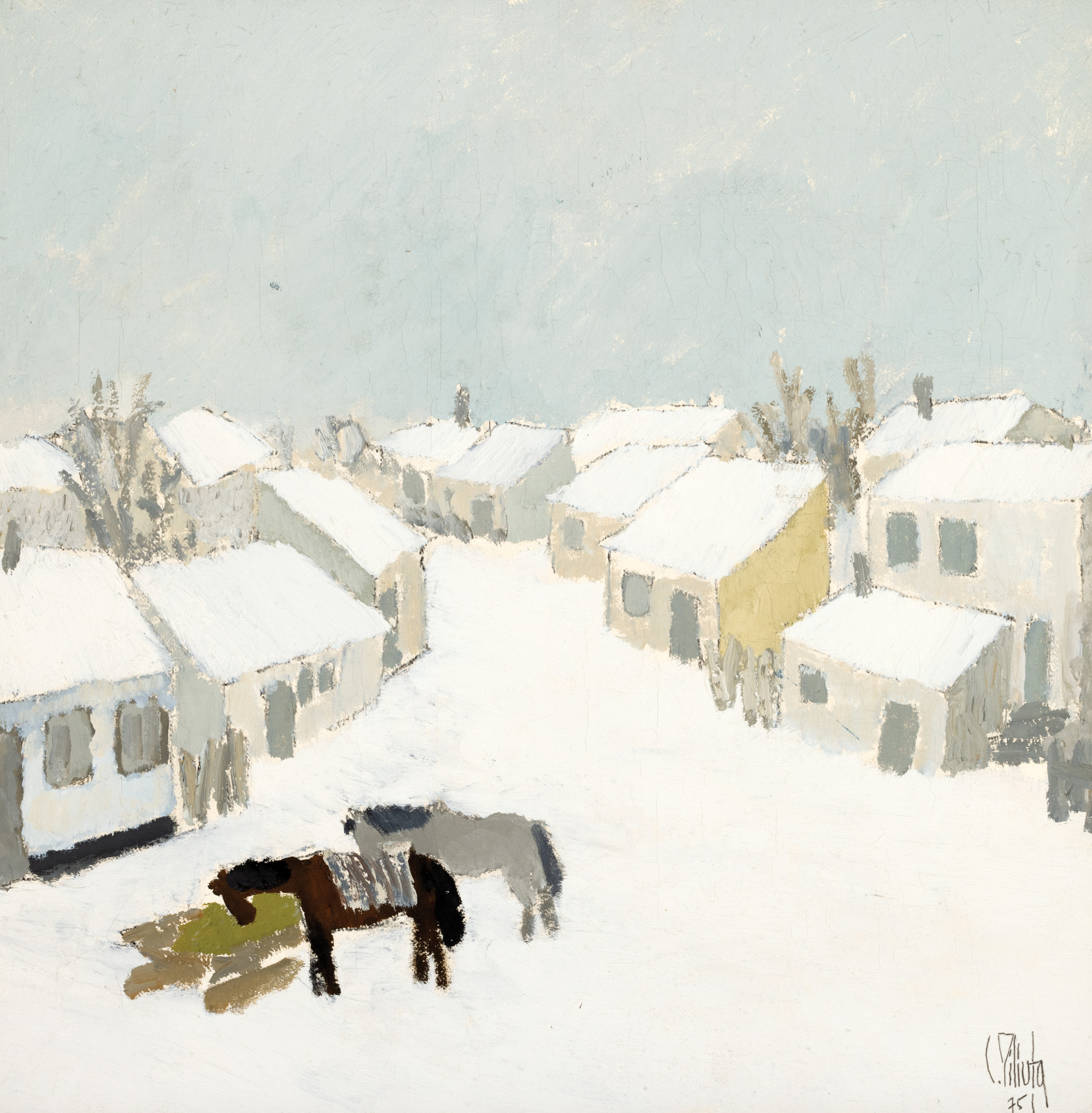 semnat și datat dreapta jos, cu negru, "C. Piliuță, (19)75"
