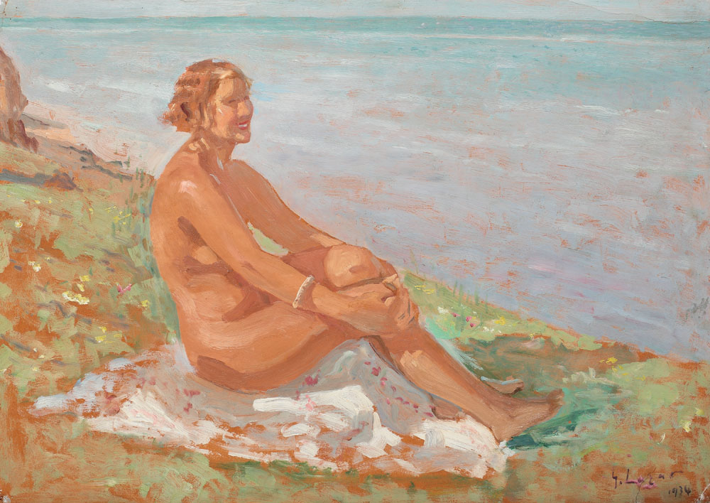 semnat și datat dreapta jos, cu negru, G. Lazăr, 1934