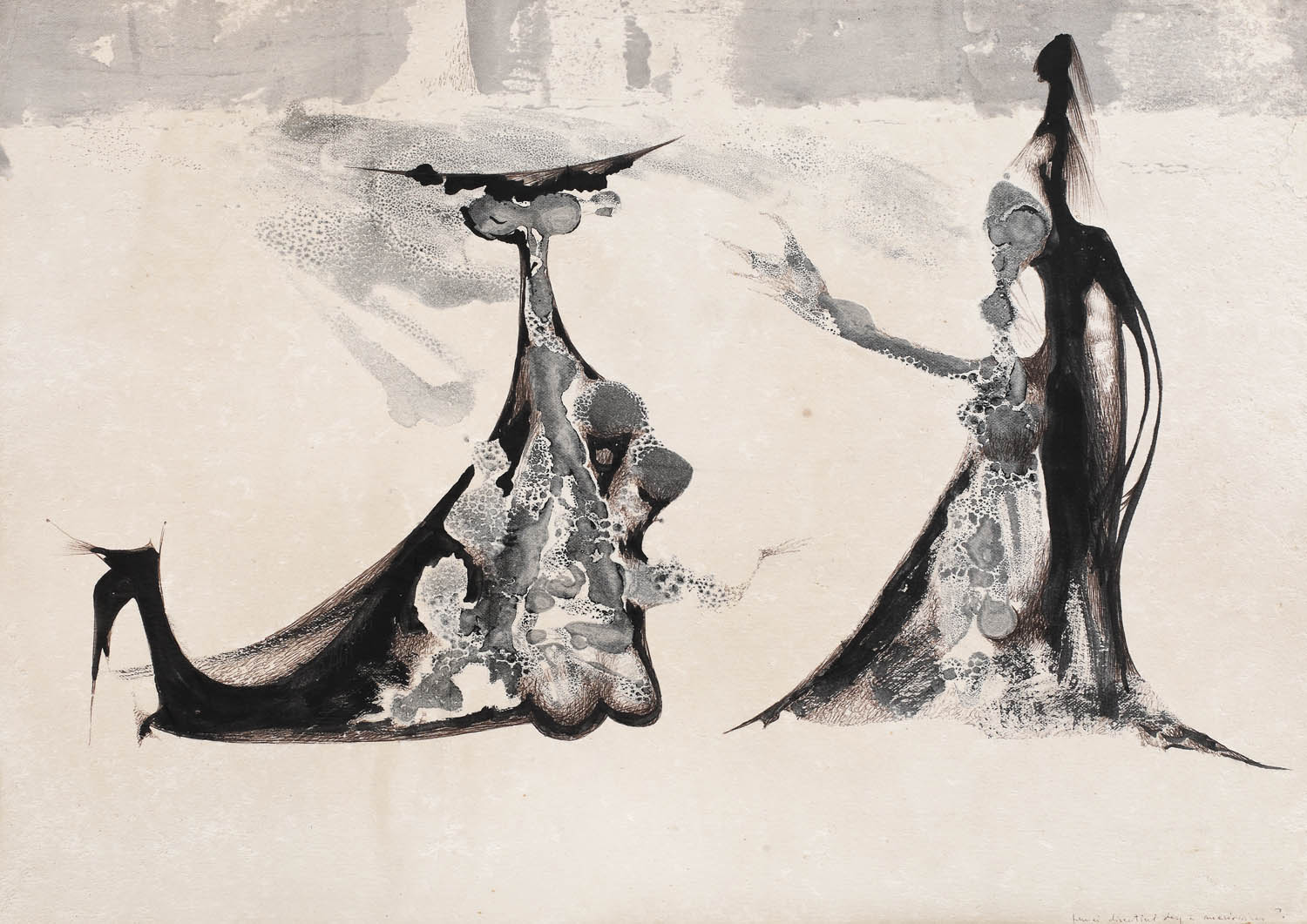 tuș și laviu pe hârtie lipită pe carton
