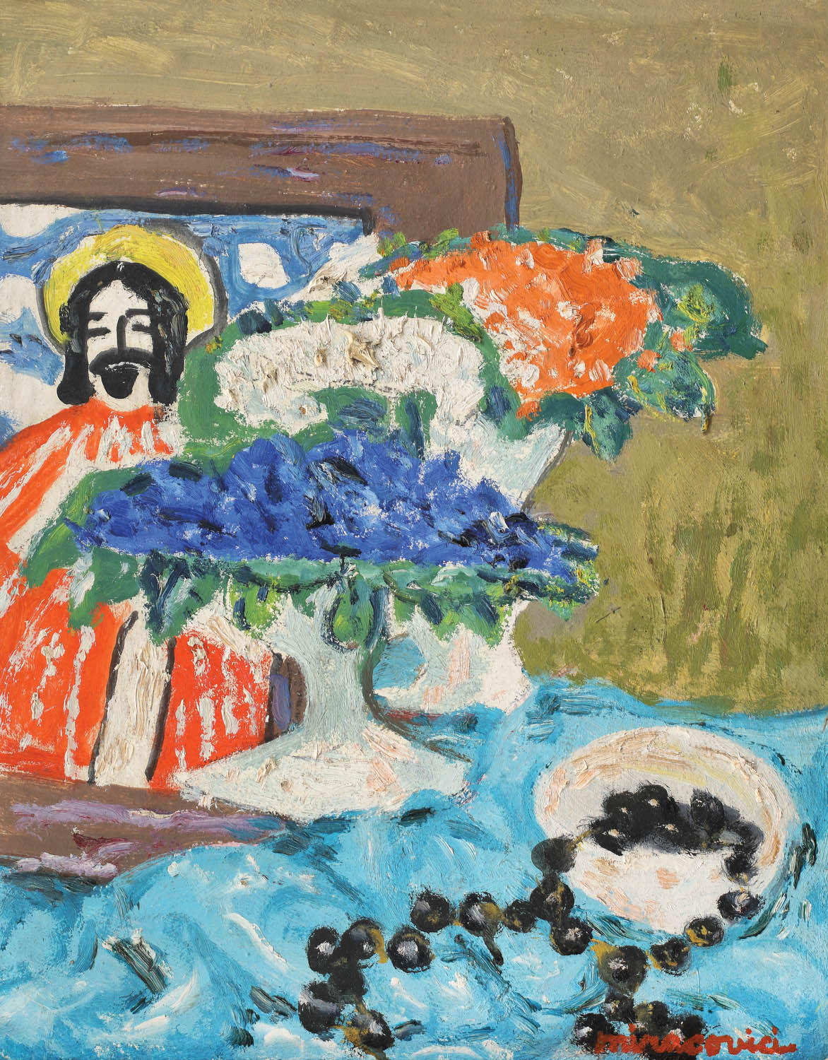 88. Flori și icoană pe sticlă