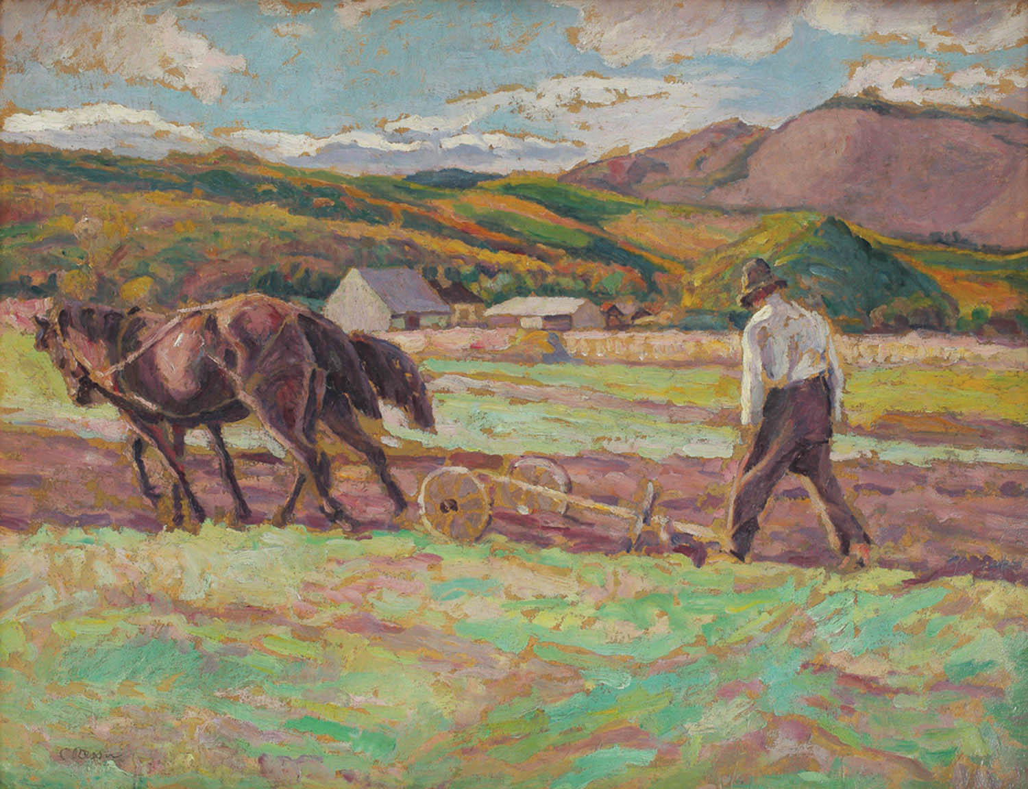 Întreaga operă artistică a lui Camil Ressu se integrează în spectrul picturii centrate pe exprimarea adevărului, un realism care, pe măsura trecerii anilor, a devenit în operele artistului tot mai semnificativ şi convingător prin însăşi esenţa lui. Tema vieții de la sat este redată de Ressu în nenumărate ipostaze, artistul ilustrând satul românesc în realitatea lui solemnă. Surprinse la Vlaici, Măcin, Vidra sau Ilovăț, compozițiile sale vor înfățișa adesea dealurile, casele, potecile, biserica satului, artistul oprindu-se mai cu seamă asupra sătenilor, surprinși adesea la munca câmpului, la căratul apei, la horă, în convoaie de funeralii, ori la întoarcerea de la târg. Opera de față se individualizează prin apartenența la perioada în care Ressu gândește compozițiile în colaborare cu aspectul rugos al cartonului preparat, echilibrând compoziția prin desen, dar mai ales prin paleta de culori și modul de preparare al acestora. Aspectul untos al tușelor de culoare, coroborat cu nuanța teroasă intuită de zonele neacoperit ale suprafeței picturale creează o atmosferă aparte, tipică compoziț'iilor lui Camil Ressu. (G.M.)