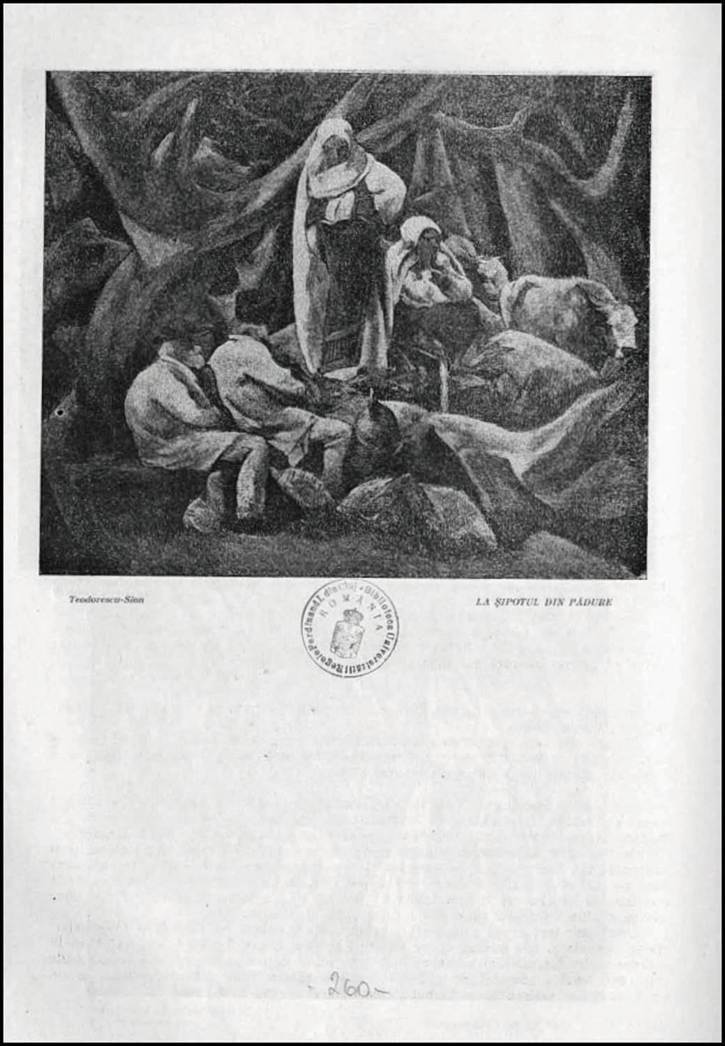 Opera a participat la Expoziția "Ion Theodorescu-Sion", 1- 25 februarie 1925, cat. 22. Opera este reprodusă în "Calendarul Minervei", anul 1926, la pag. 109. Opera a participat la expoziția retrospectivă Ion Theodorescu-Sion, Muzeul de Artă al R.S.R., București, 1971 și este reprodusă în catalogul expoziției la cat. 91, pag. 100-101, sub titlul "Șipotul din pădure". Opera este reprodusă în articolul dedicat lui Ion Theodorescu-Sion în revista Gândirea, anul 1925, nr. 8. O varianta a lucrării s-a regăsit în colecția Lucian Blaga. Atât poetul cât și Sion par să se fi folosit de surse comune în creația lor, pictorul pentru ciclul "La șipot", iar poetul pentru volumul "La cumpăna apelor", în special poezia "Septemvrie":(Prin ceasul verde al pădurii/...Cântecul vechi într-odată, /Vrea șipotul să și-l învețe/ În jilavul mușchi mi se-mbie/ păreri șterse de tinerețe/ Mari turme cu clopote vin/ prin amurgul gorunilor sferici/ în codru stârnind ca un zvon/ de trecute pierdute biserici/../pădurea cu tulnice multe..)