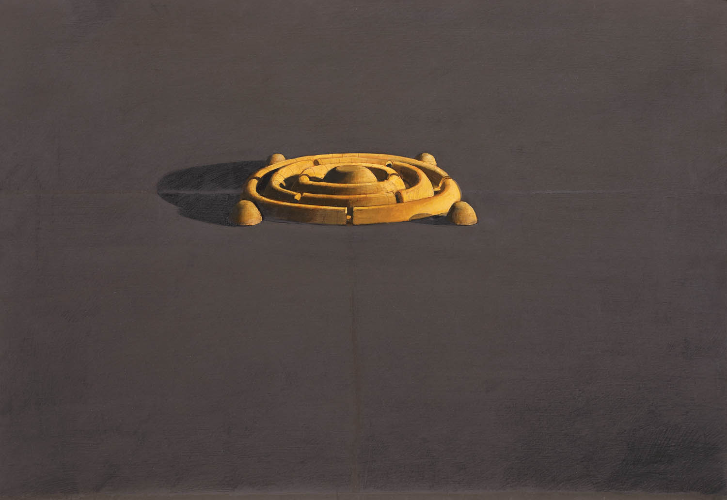 Horia Damian este un artist complex, care abordează deopotrivă pictura și sculptura cu aceeași măiestrie și finețe, care prin arta sa iese din cotidian pentru a construi monumental. Lucrarea face parte partea din seria simbolurilor locative, spații nelocuite și aflate în solitudine și tăcere. Este un loc unde spectatorul va putea medita în liniște, poate participa la o altă existență, de conexiune cu divinitatea, de reconectare la spiritualitate. Spațiul este dispus sub forma unui labirint circular, din care privitorul iese profund schimbat la nivel spiritual. Perspectivele asupra acestor situri nelocuite sunt variate: suntem în față, apoi în profil. Privim cetatea de sus, de departe, mai de aproape, în diagonală. (I.C:)