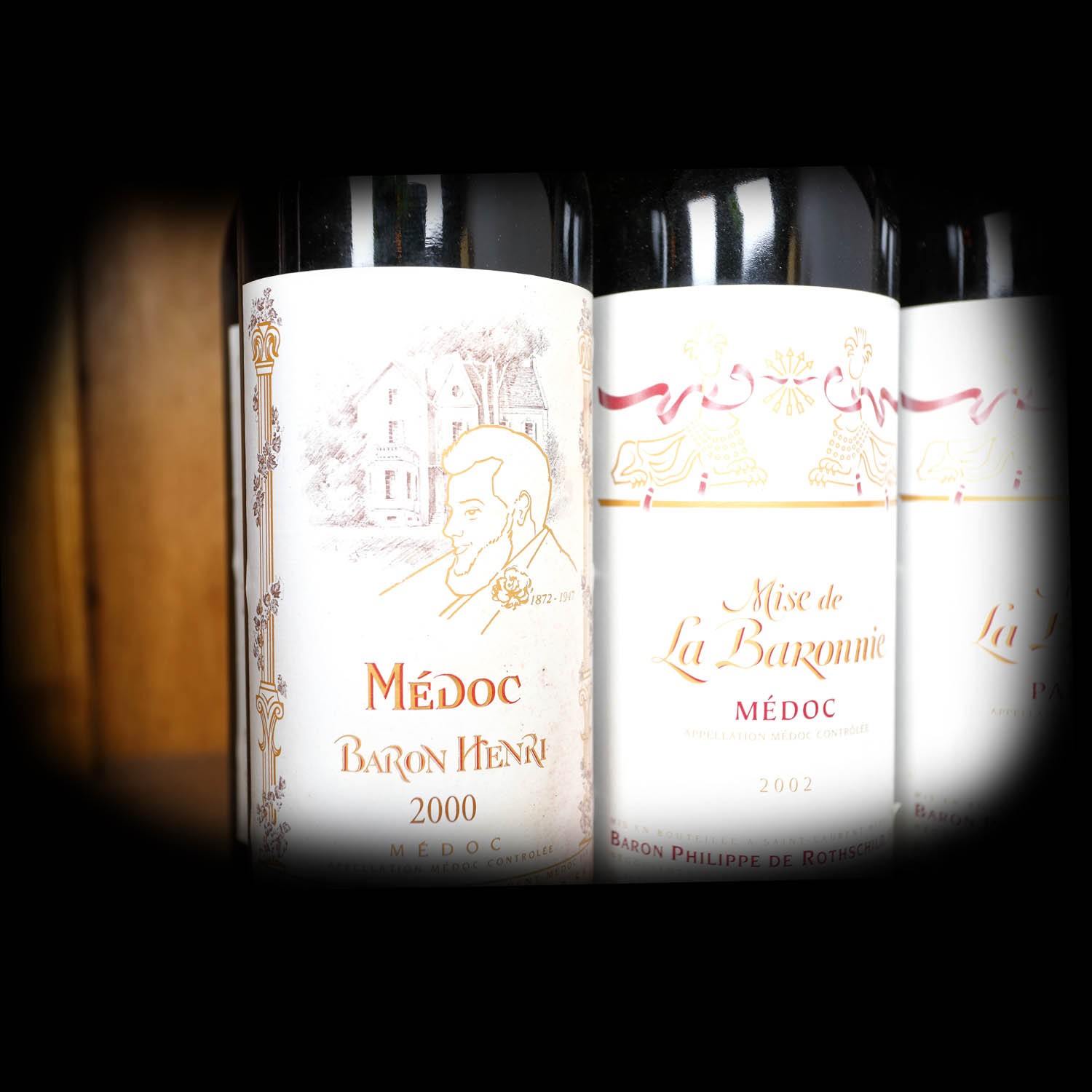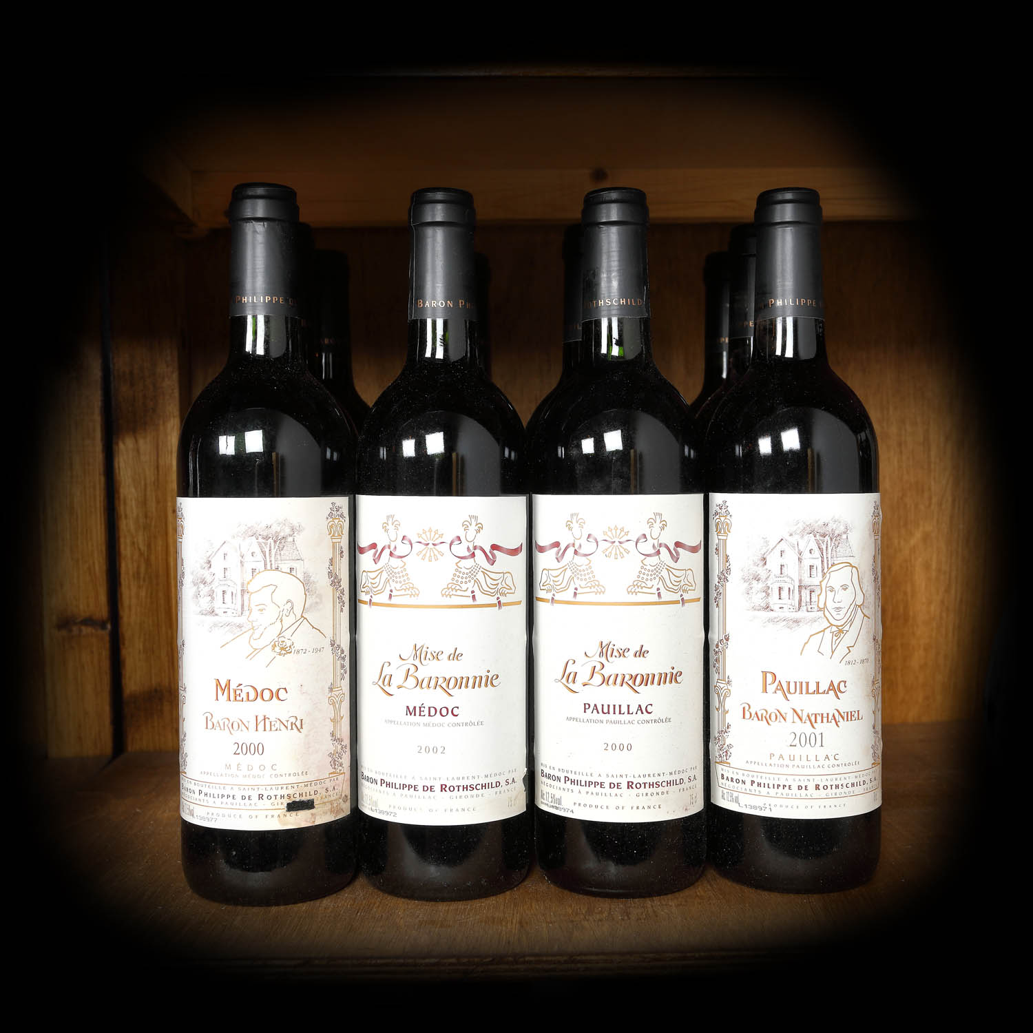 Baron Henri, Baron Phillipe de Rothschild, Medoc, Bordeaux, 2000, 3st x 0,75l Mise de La Baronnie, Baron Phillipe de Rothschild, Medoc, Bordeaux, 2002, 3st x 0,75l Mise de La Baronnie, Baron Phillipe de Rothschild, Pauillac, Bordeaux, 2000, 3st x 0,75l Baron Nathaniel, Baron Phillipe de Rothschild, Pauillac, Bordeaux, 2001, 3st x 0,75l