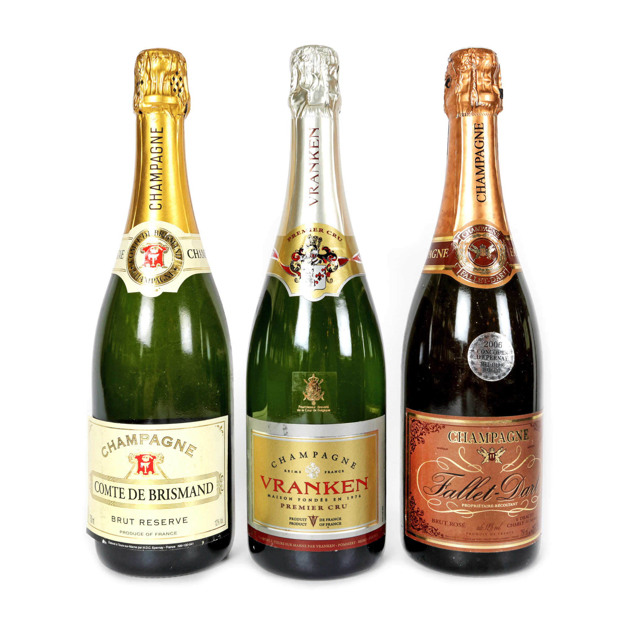 86. Champagne Vranken, Premier Cru, 2012, Champagne Fallet-Dart, 2006, Champagne Comte de Brismand, Brut Reserve, 3st x 0,75l