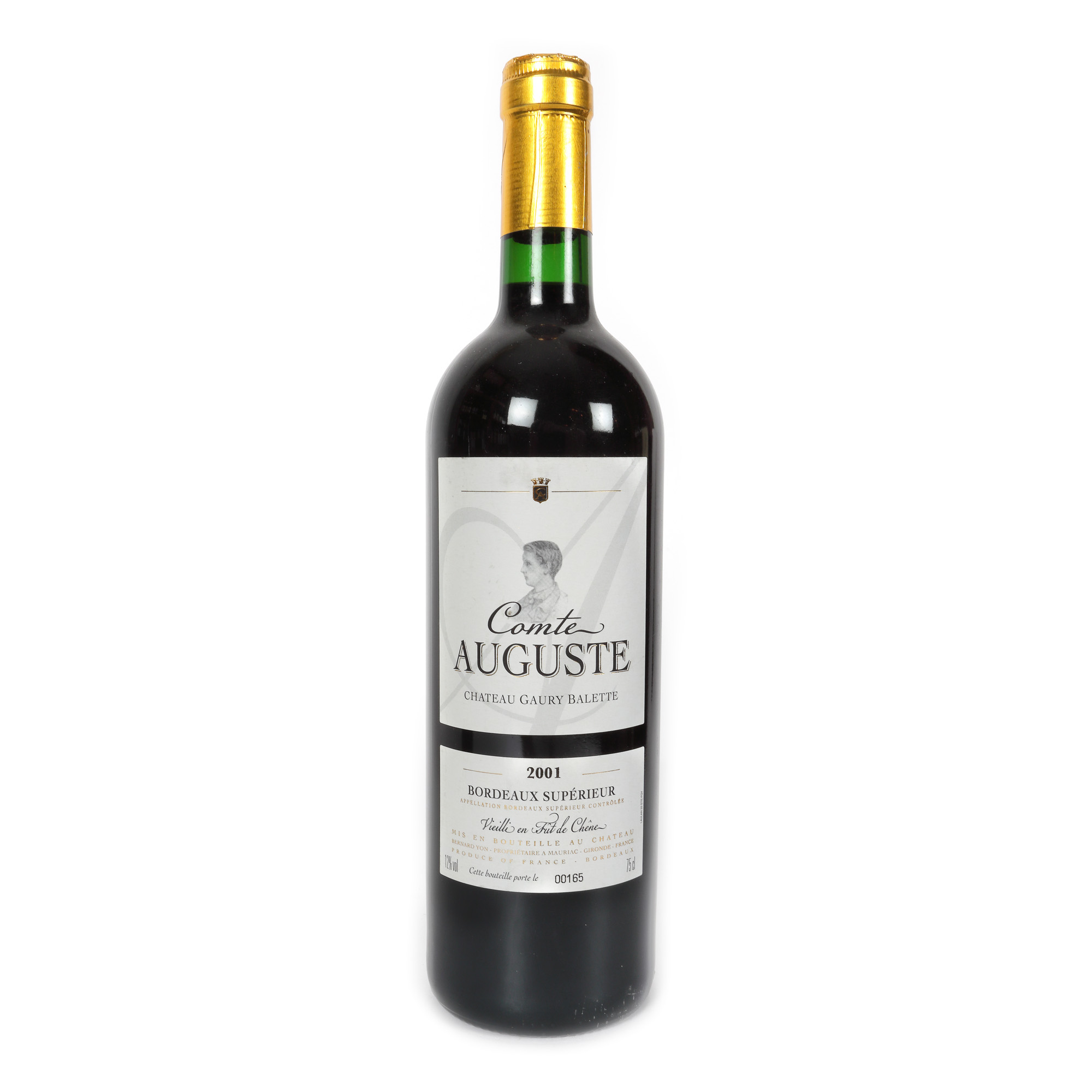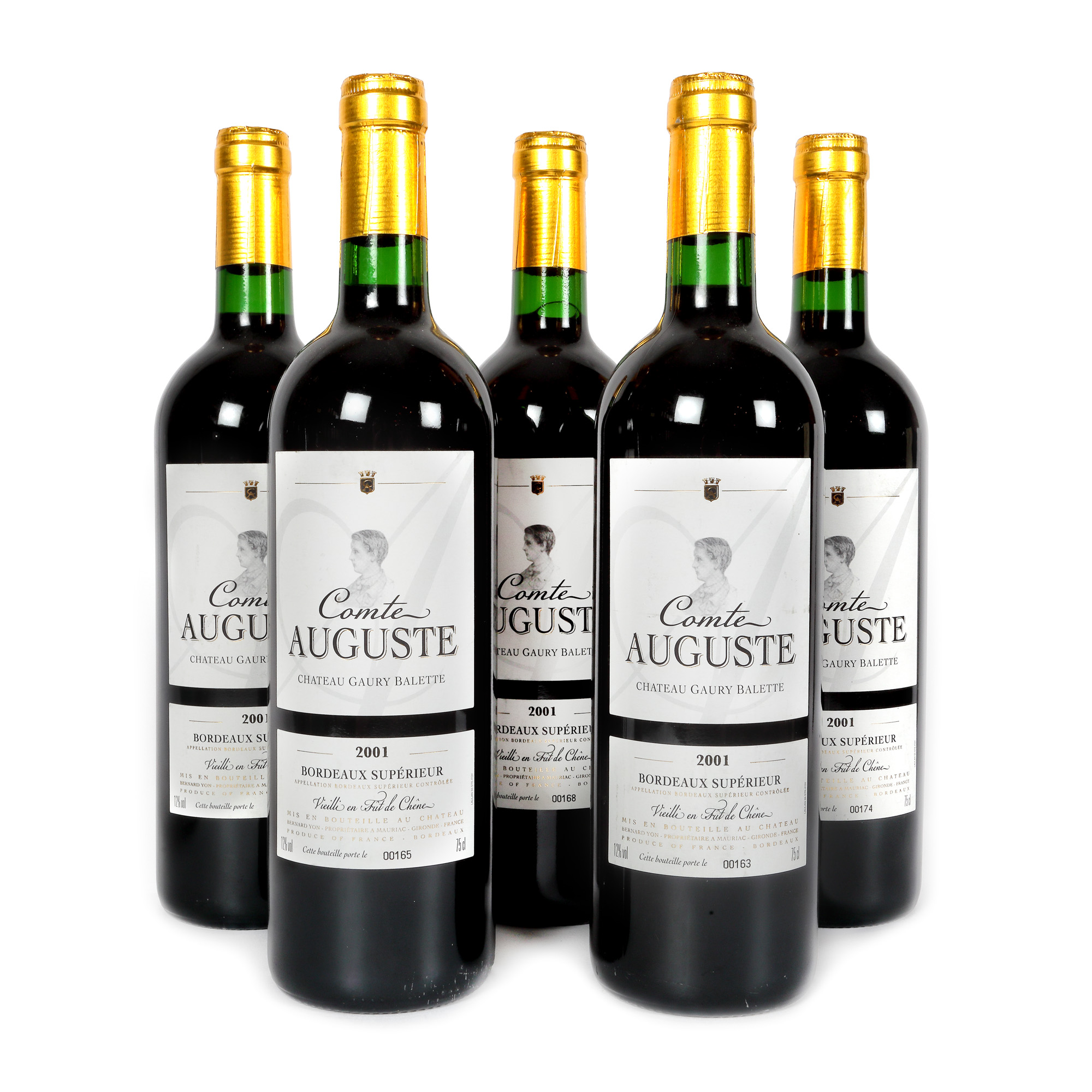 212. Château Gaury Balette, Comte Auguste, Bordeaux Supérieur, 2001, 5st x 0,75l