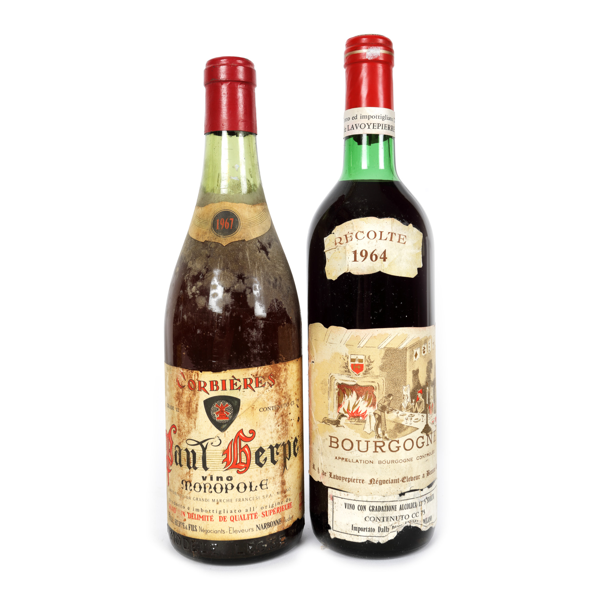 La Vigne Enchantée, Côtes du Rhône, 1967, 1st x 0,75l Clos du Barrail, Bordeaux, 1967, 1st x 0,75l Paul Herpe, Monopole, Corbières, 1967, 1st x 0,75l Lavoyepierre-Beaune, Bourgogne, 1964, 1st x 0,75l