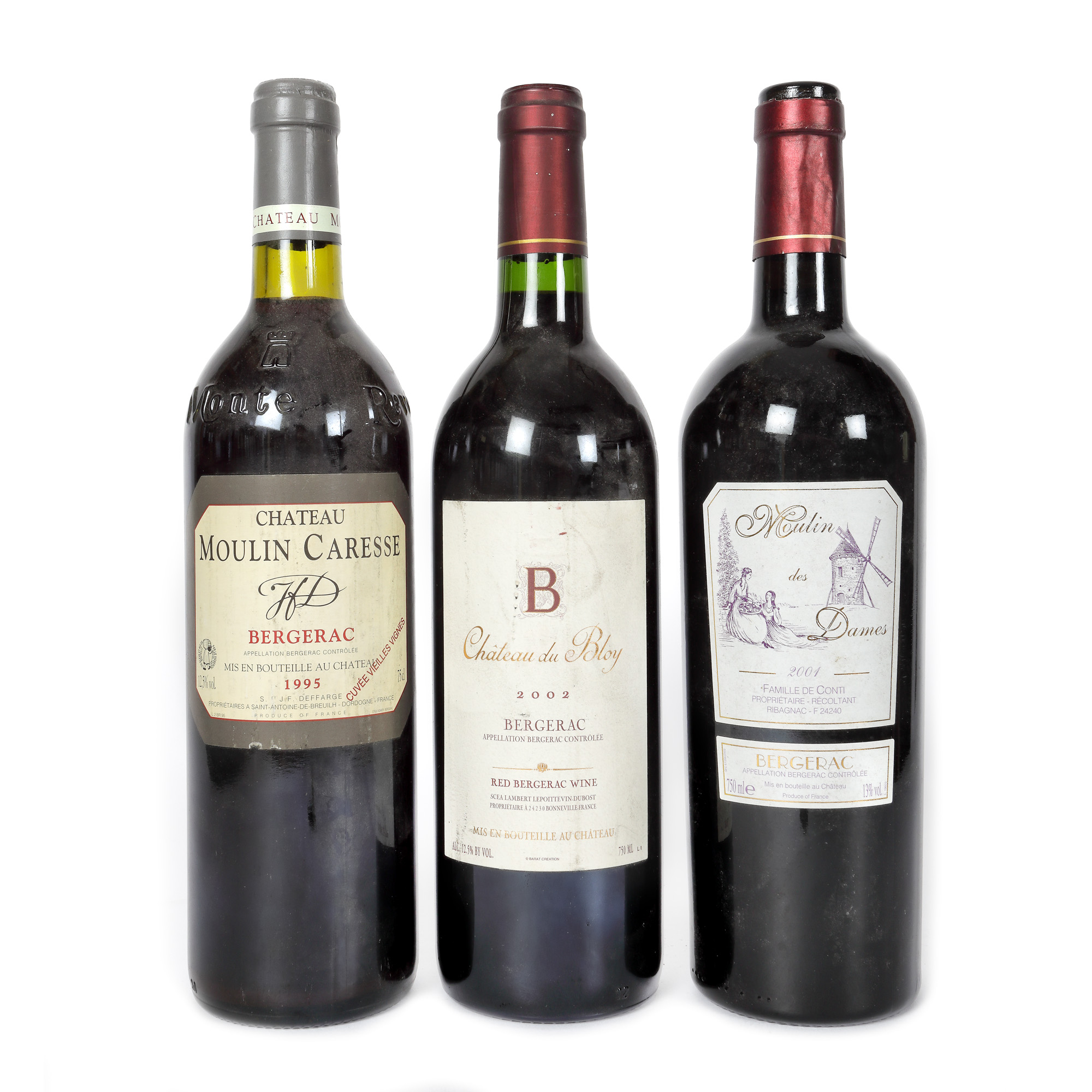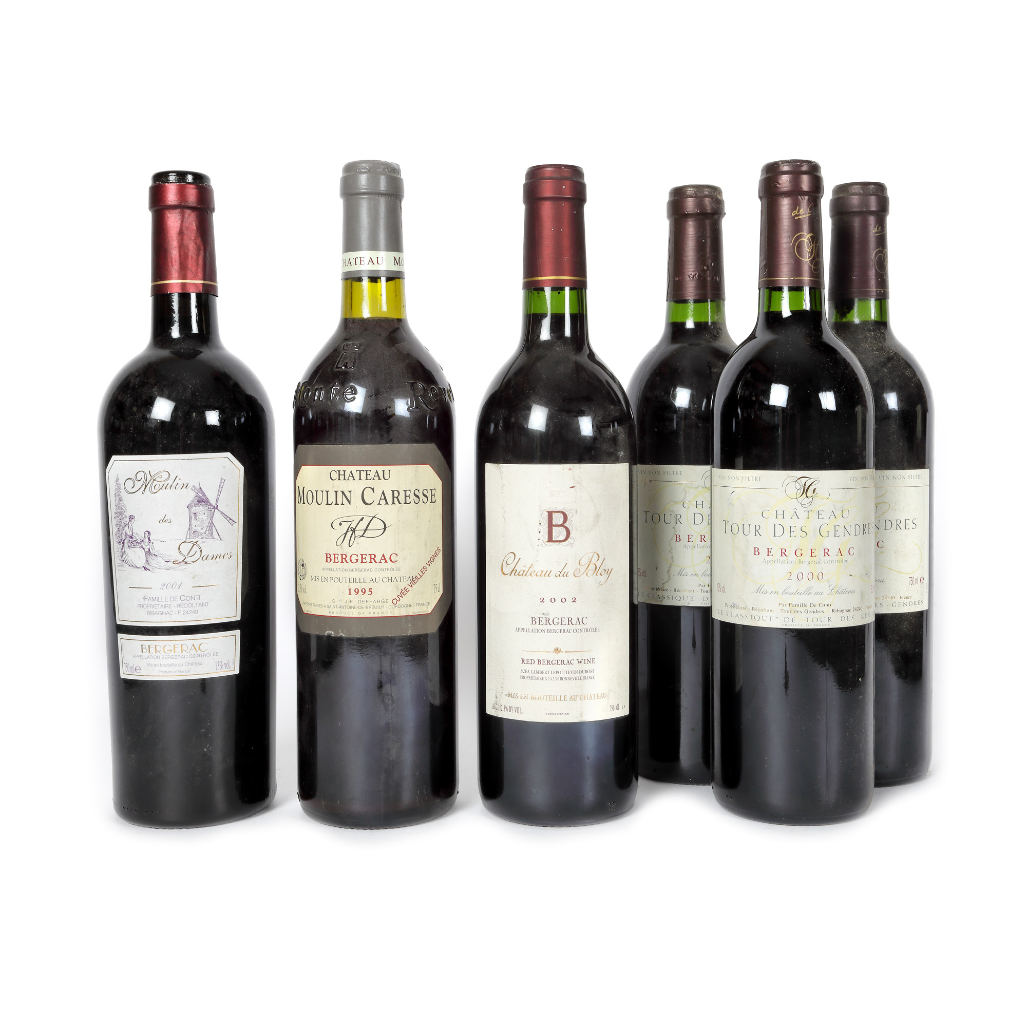 Château Moulin Caresse, Bergerac, 1995, 1st x 0,75l Moulin des Dames, Bergerac, 2001, 1st x 0,75l Château du Bloy, Bergerac, 2002, 1st x 0,75l Château Tour des Gendres, Bergerac, 2000, 3st x 0,75l